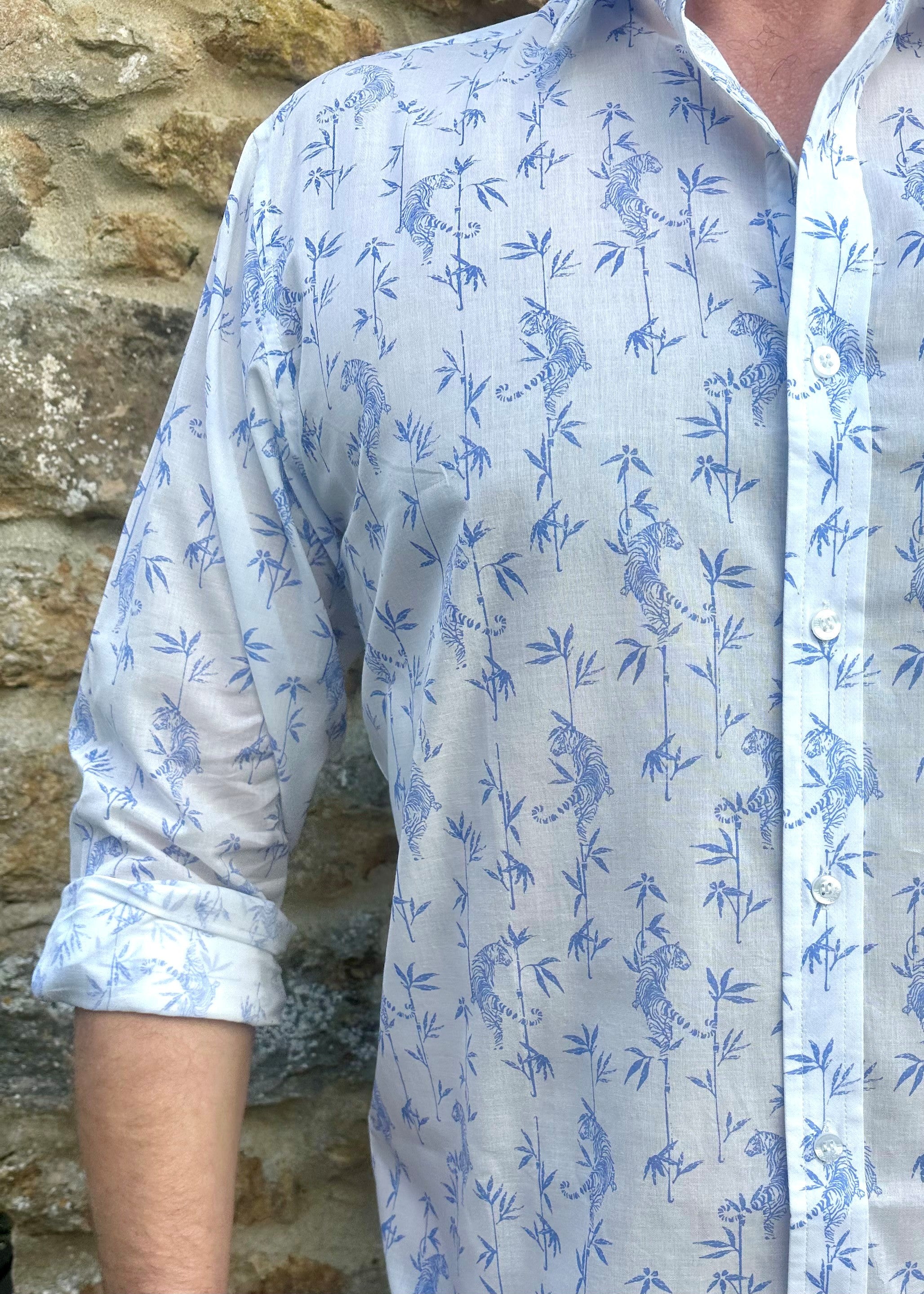 Lucky Lotus Mens' Cotton Shirt in Navy