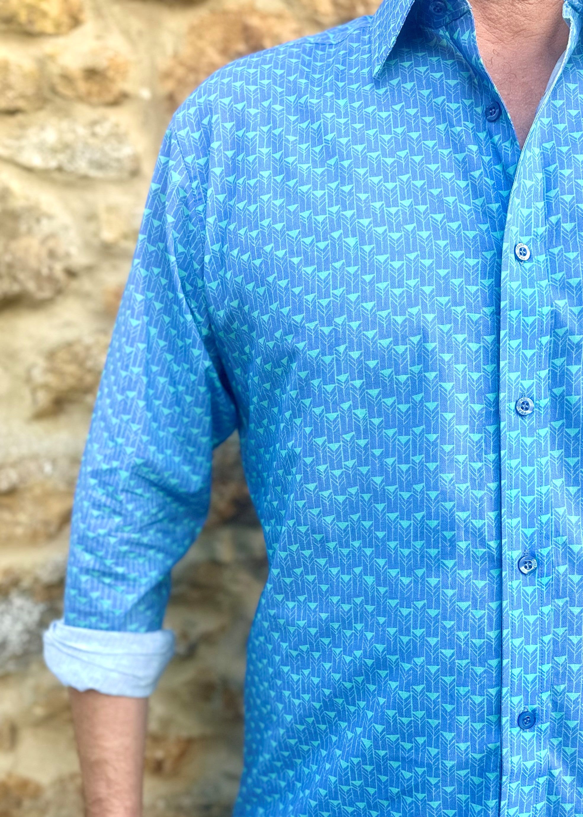 Electro Beat Men's Organic Cotton Shirt in Mid Blue