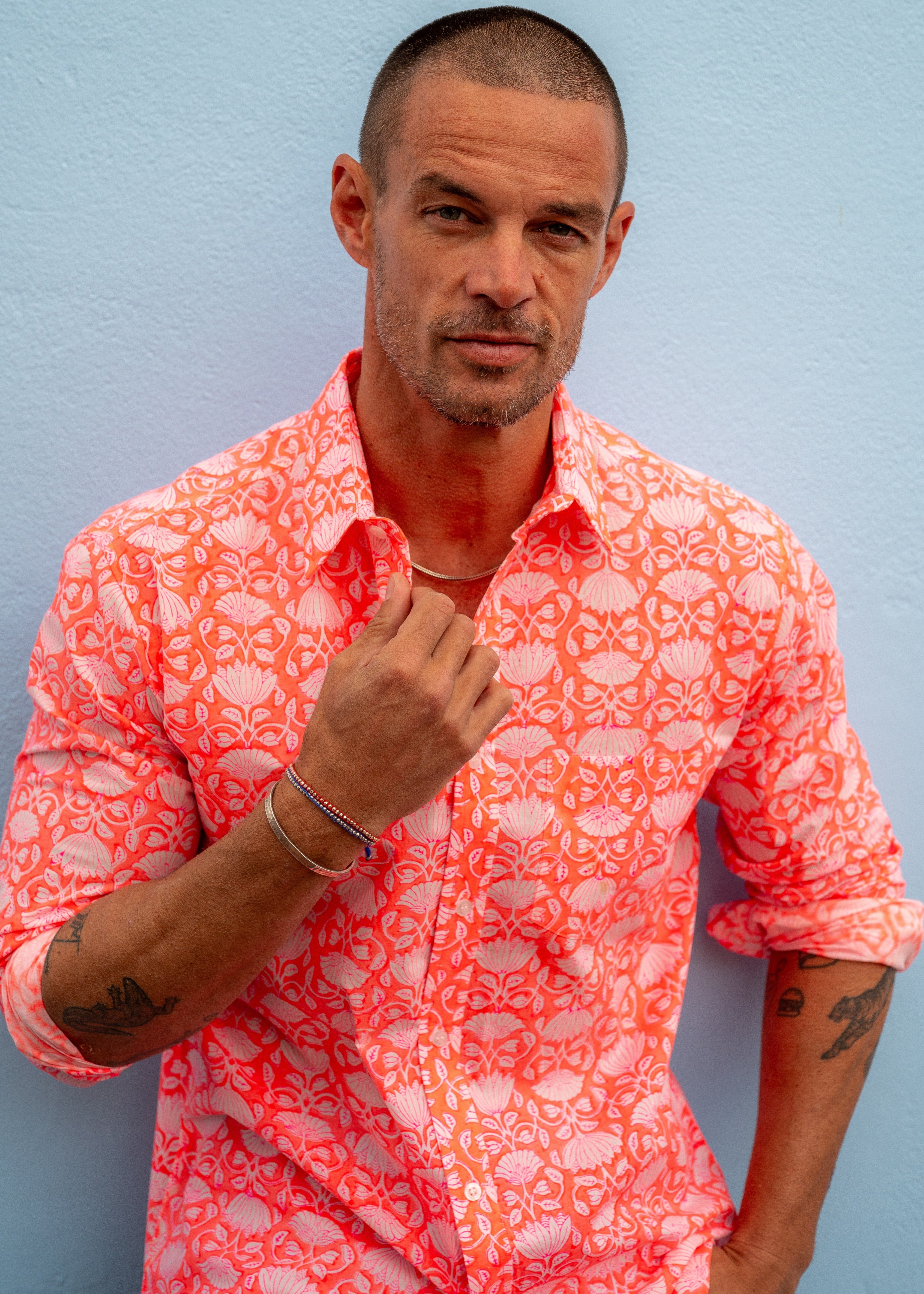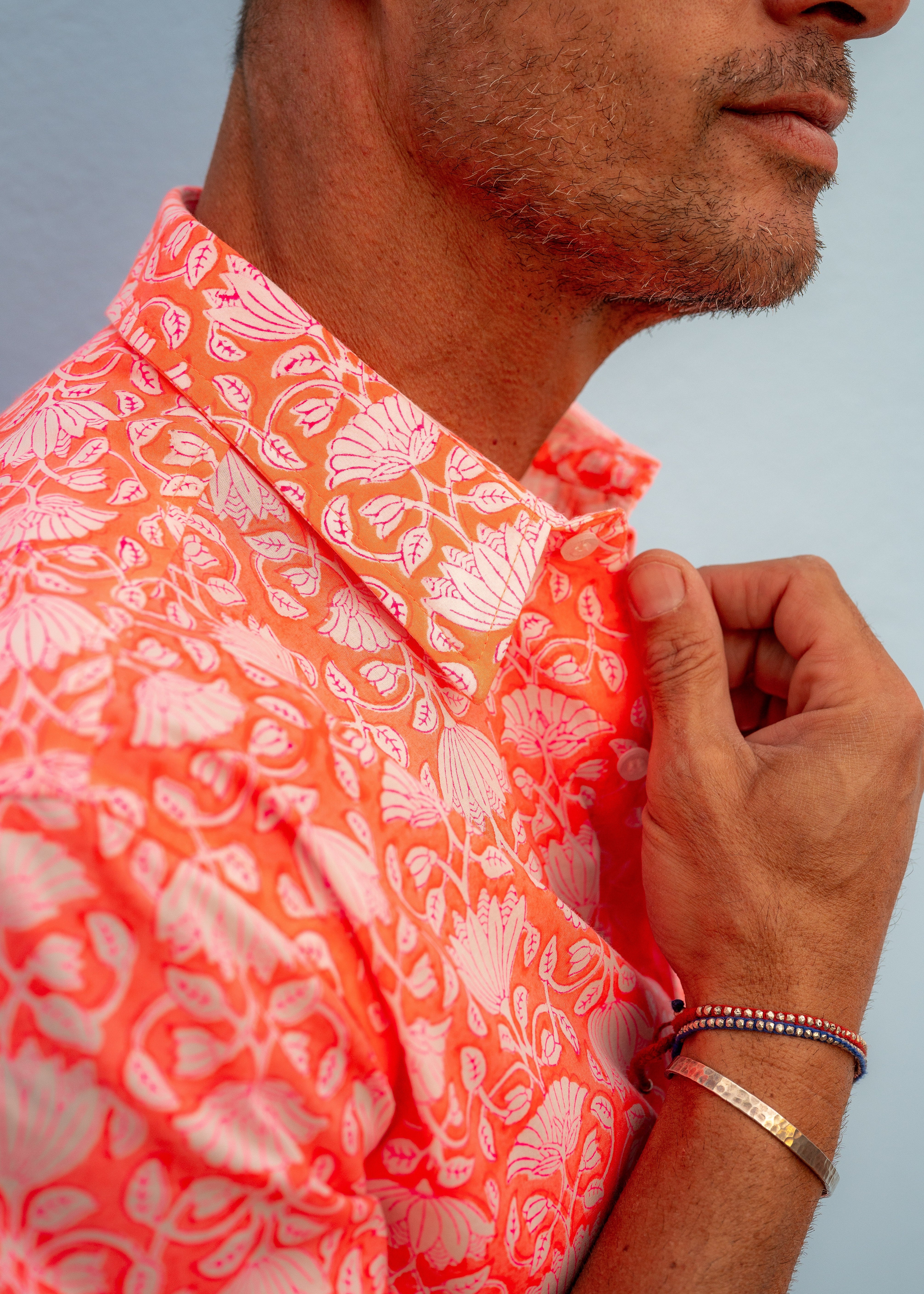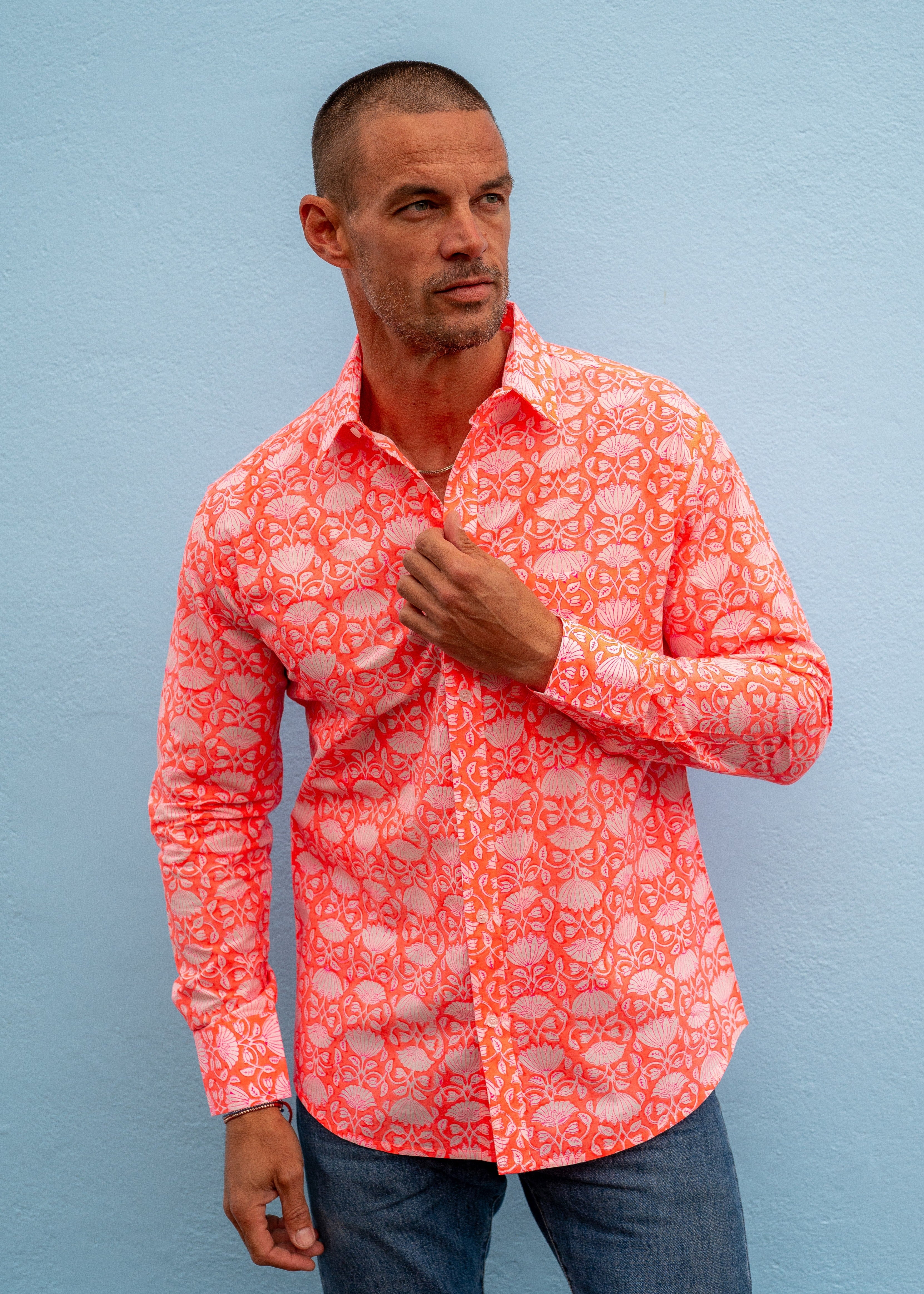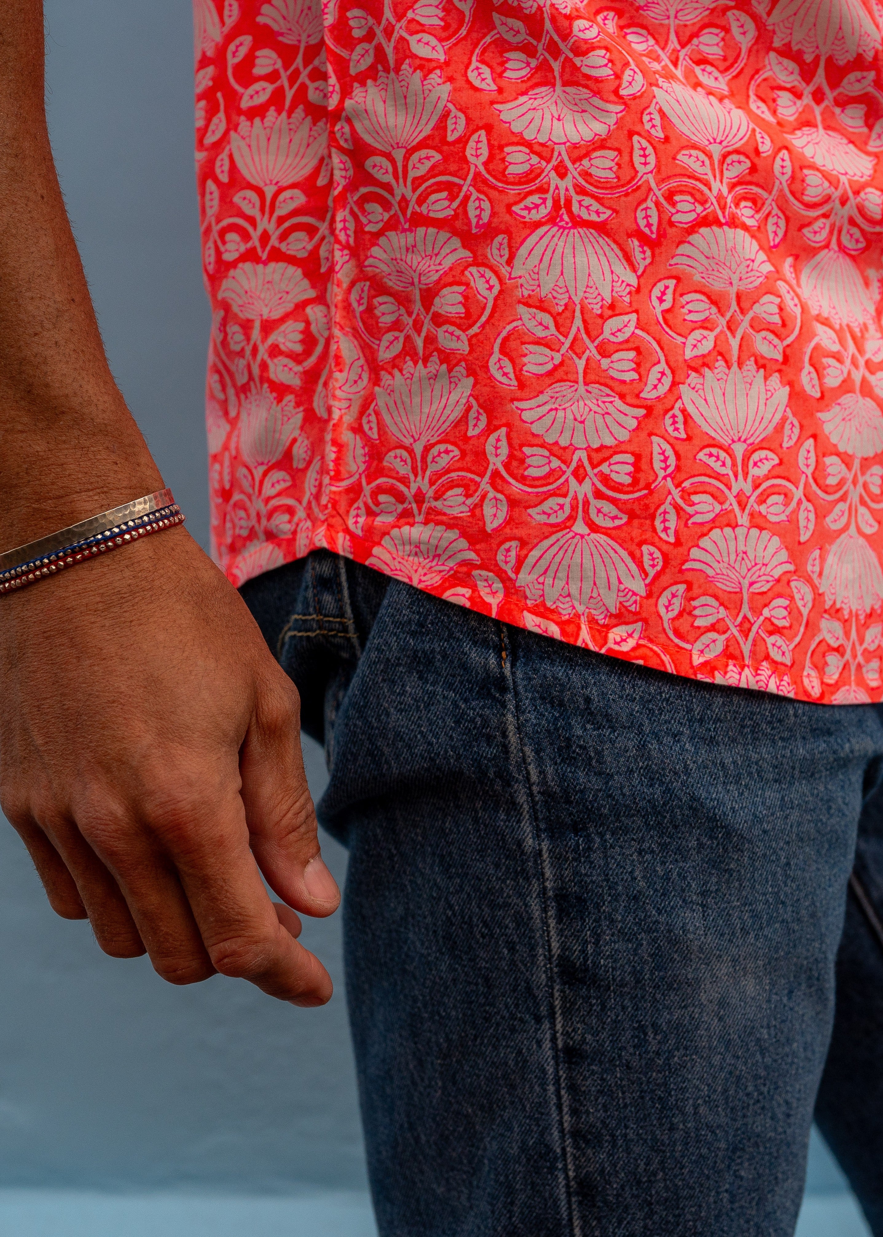 Agonda Tide Mens' Cotton Shirt in Coral and Neon Pink