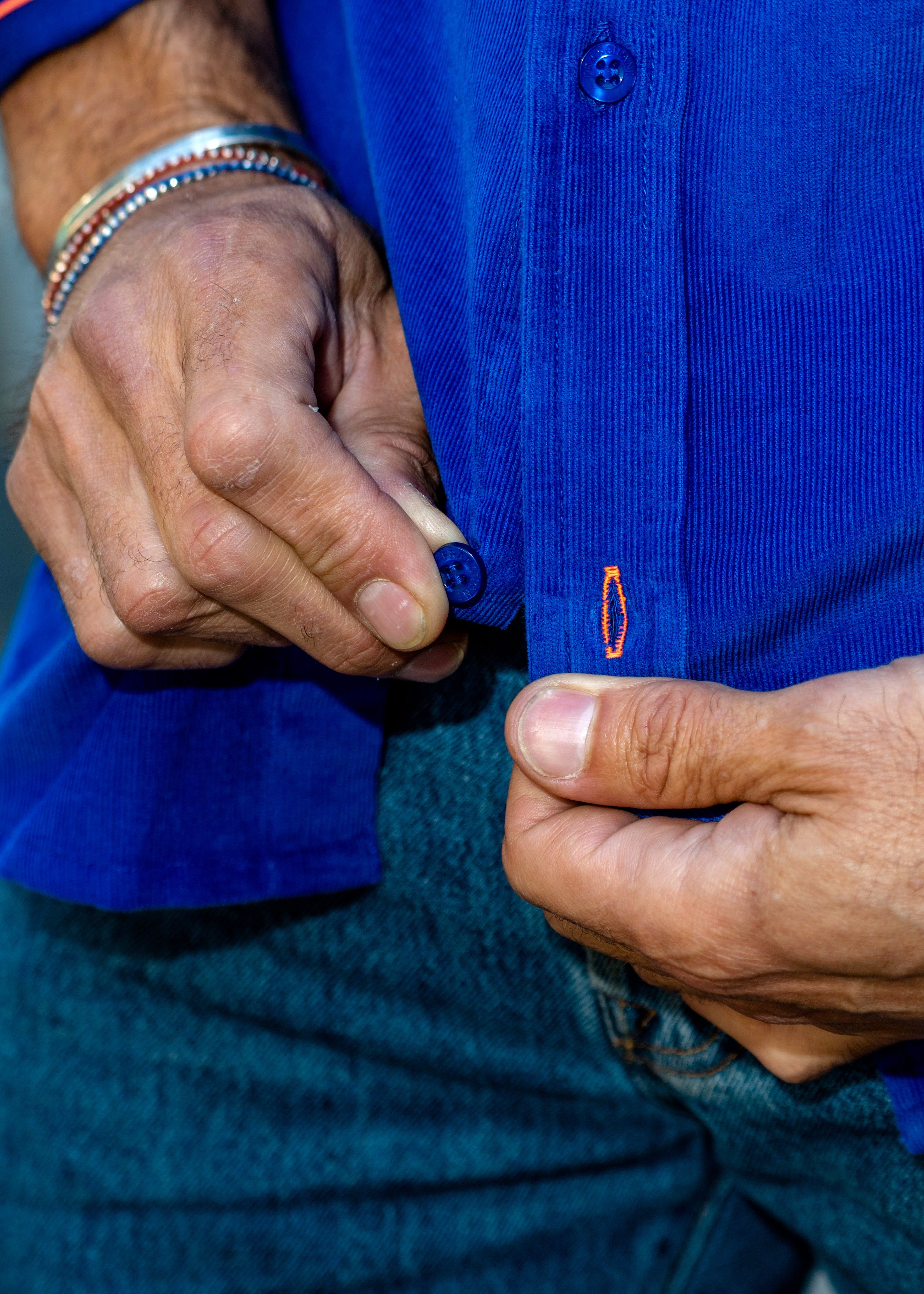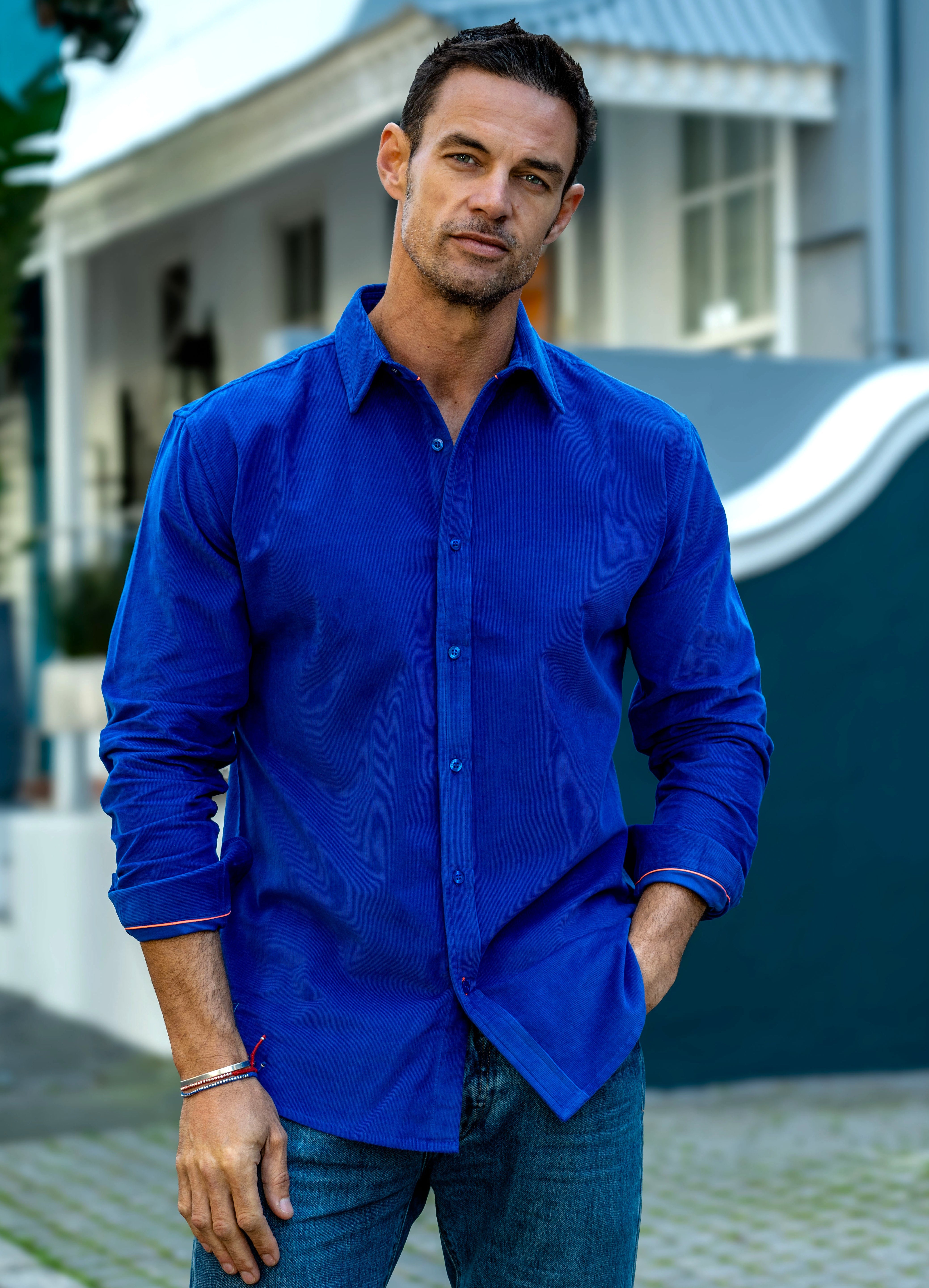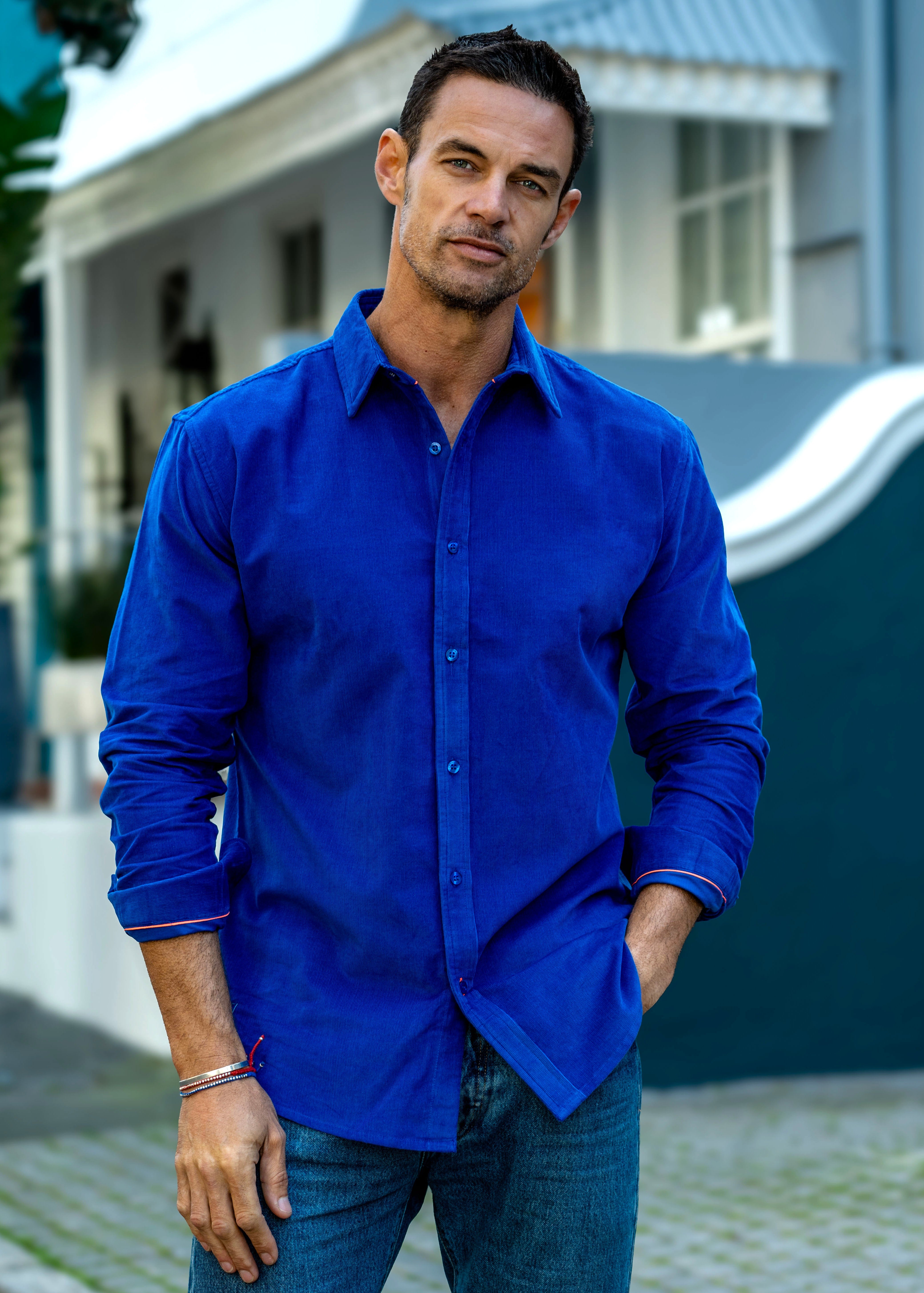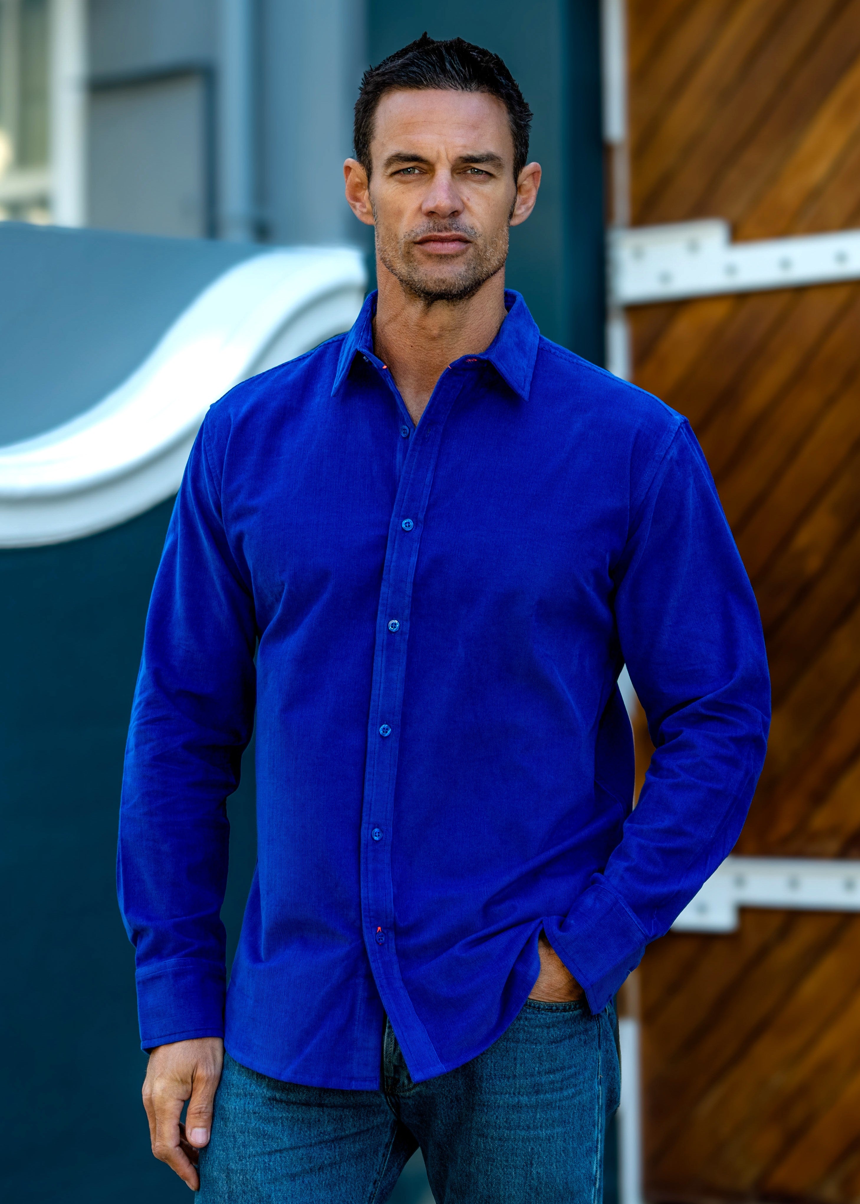 Corduroy Mens' Organic Cotton Shirt in Electric Blue