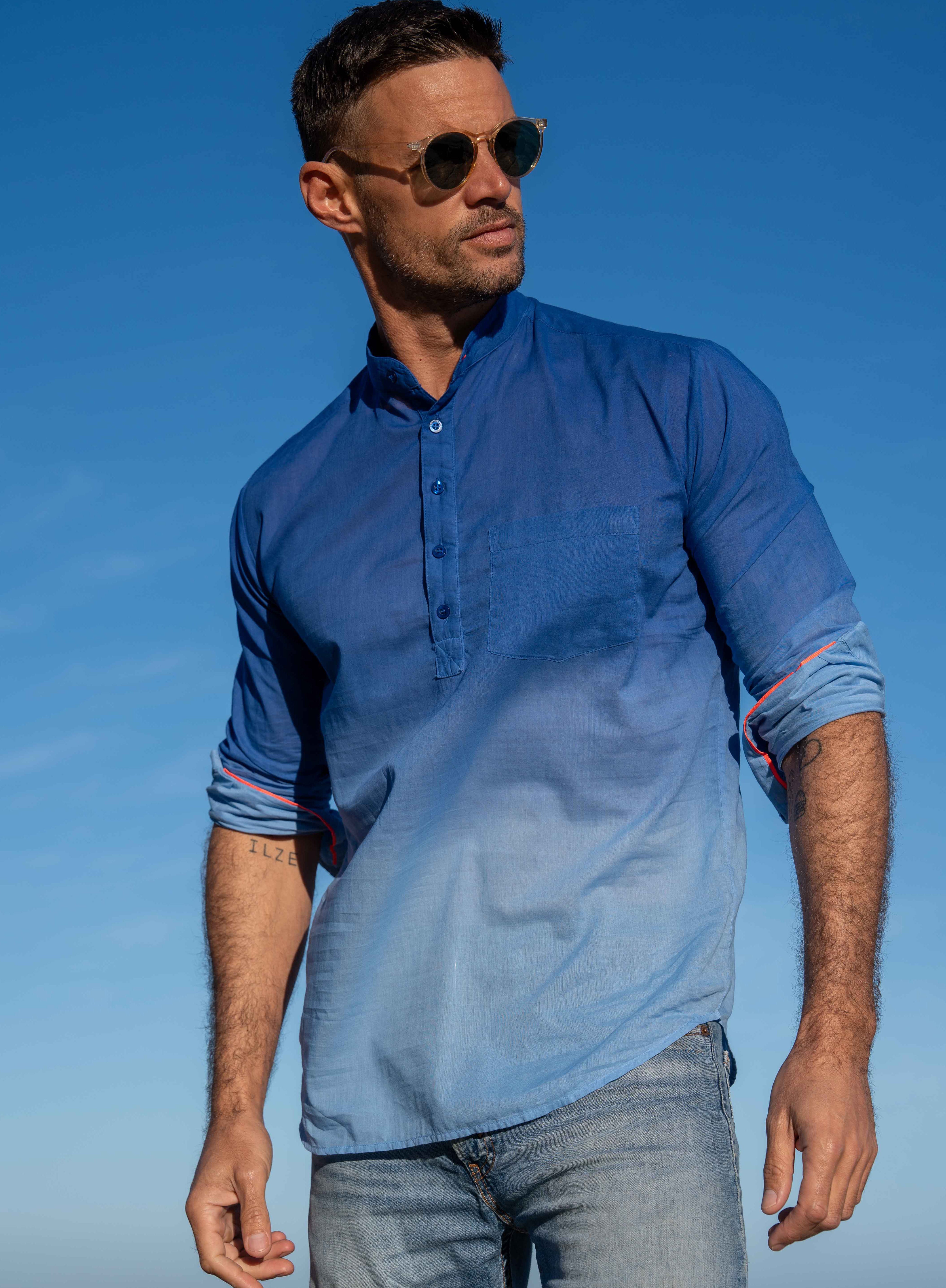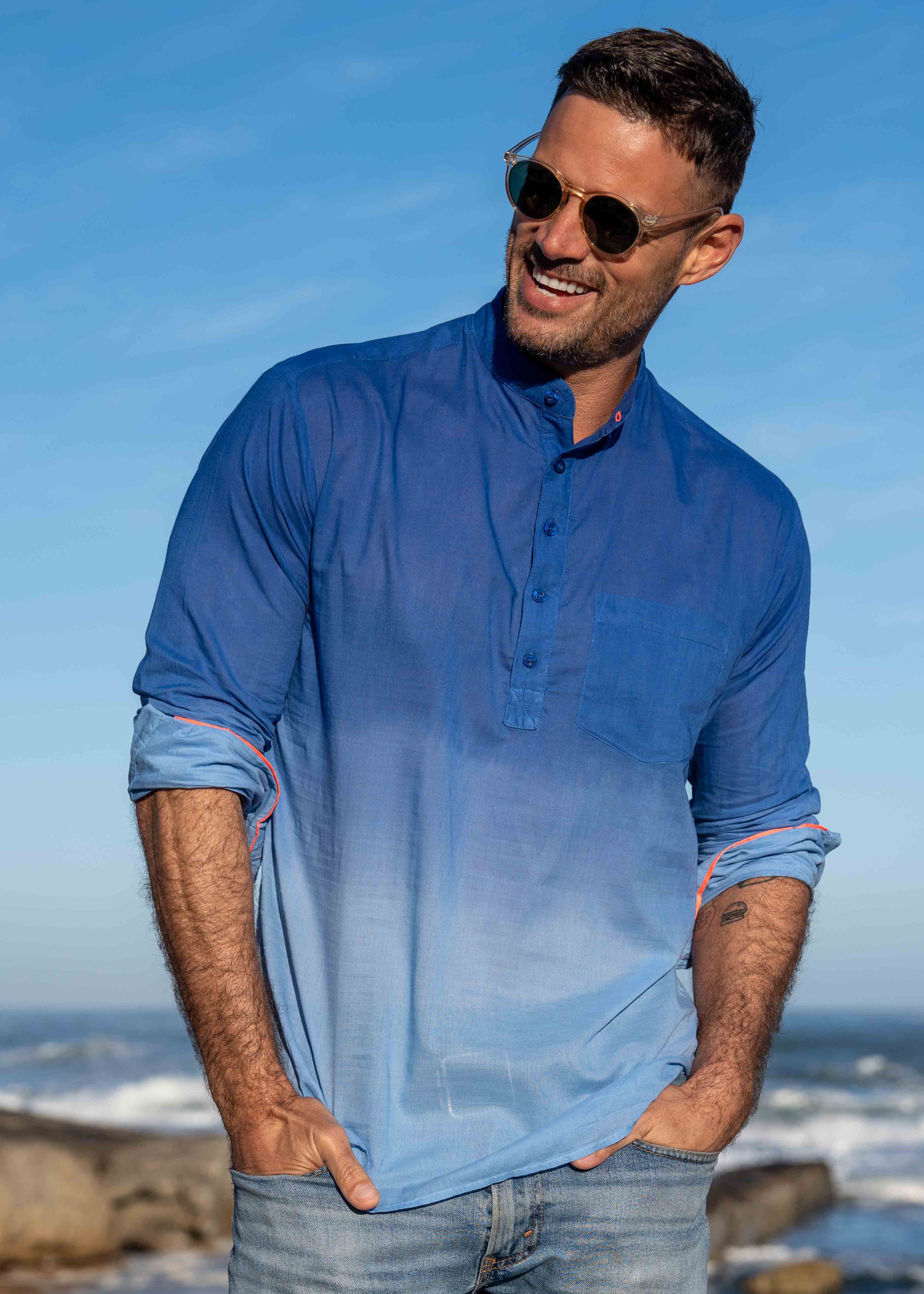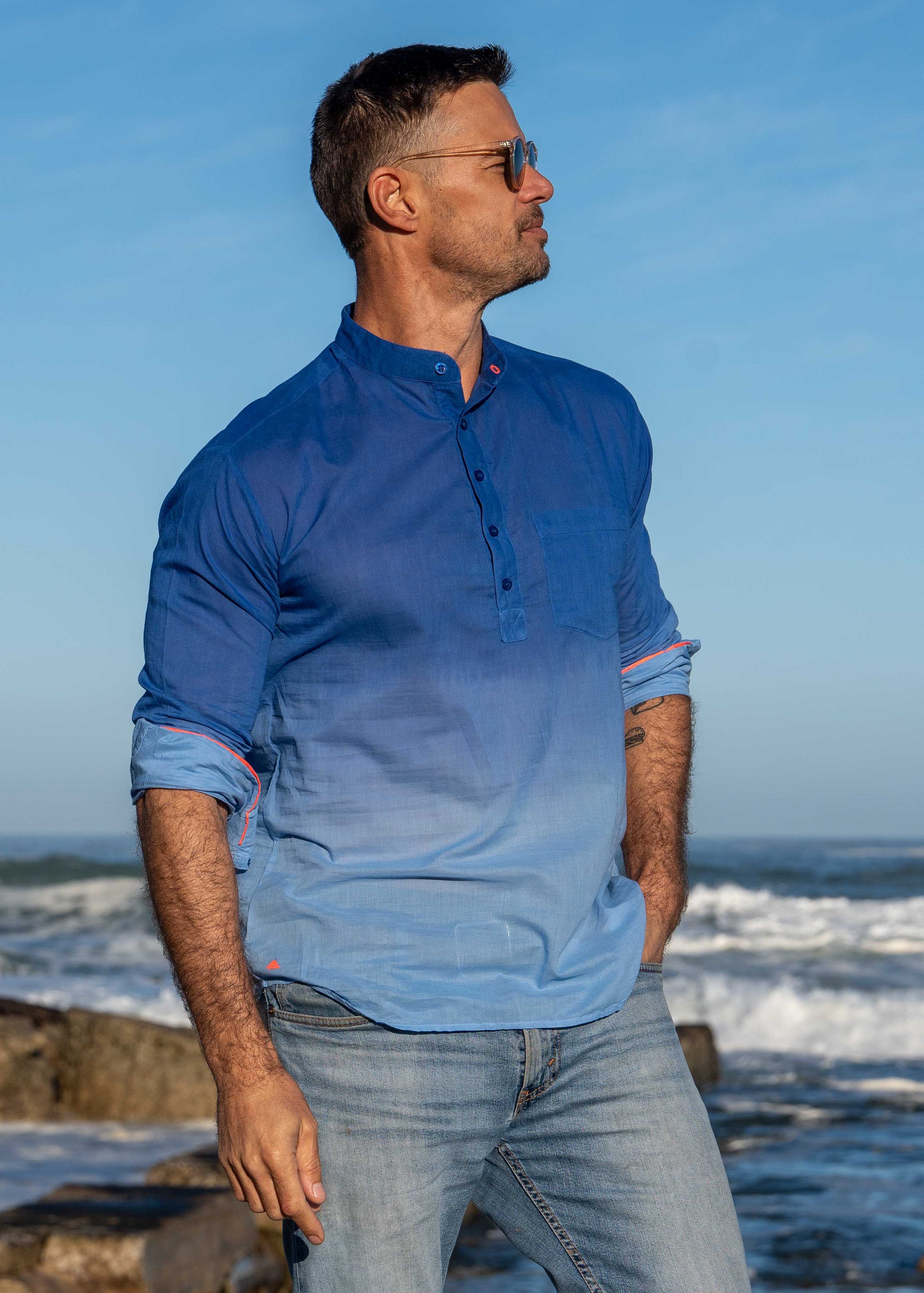 Island Breeze Mens' Half Placket Cotton Shirt in Blue Ombre