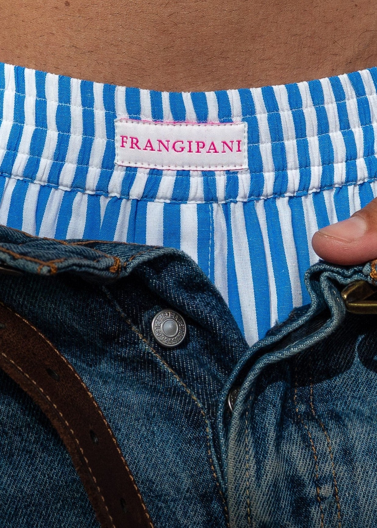 Clean, cool, and classic with a twist. The Blue Stripe Boxer Shorts bring that crisp, fresh-out-of-the-sea vibe – perfect under jeans, shorts or nothing at all. Cut from premium cotton and featuring bold sky-and-ocean blue stripes, they’re a staple with serious attitude.