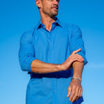 Clean, cool, and effortlessly sharp. The Azure Blue shirt is cut from our signature organic cotton in the classic Frangipani fit, finished with subtle contrast details – just enough to catch the eye. This is your go-to summer shirt when you want colour without the pattern. Light, breathable, and made for sunshine.