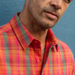 Woven in vibrant hues of pink, red, and orange with a flash of green, this shirt brings energy and confidence wherever it goes. Pair it with denim, wear it open or buttoned up — Lock and Load is ready for anything.