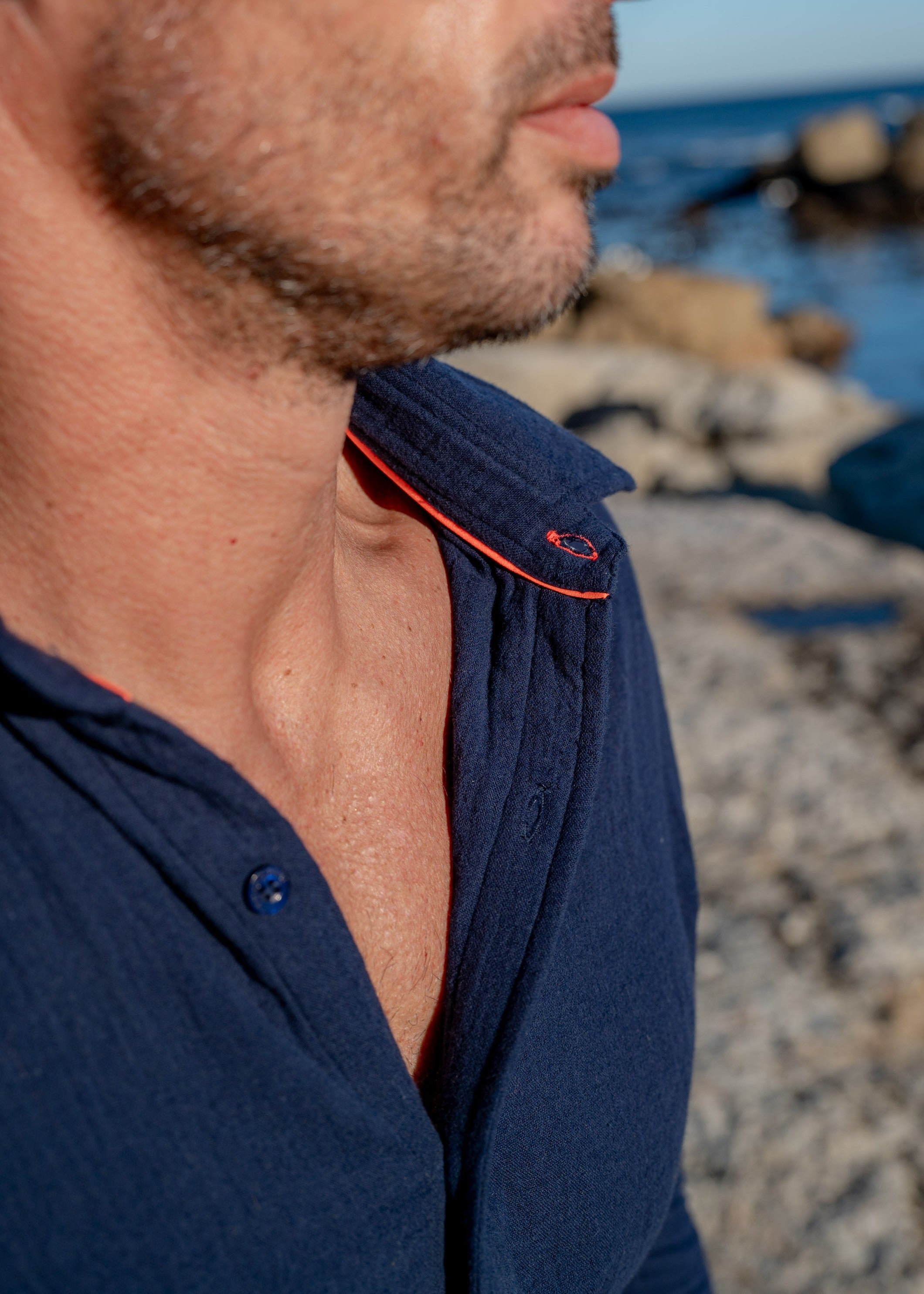 We’ve added subtle Frangipani details with contrast colour stitching at the neck, cuff, and buttonholes — it’s casual with character, and twice as nice by name and nature.