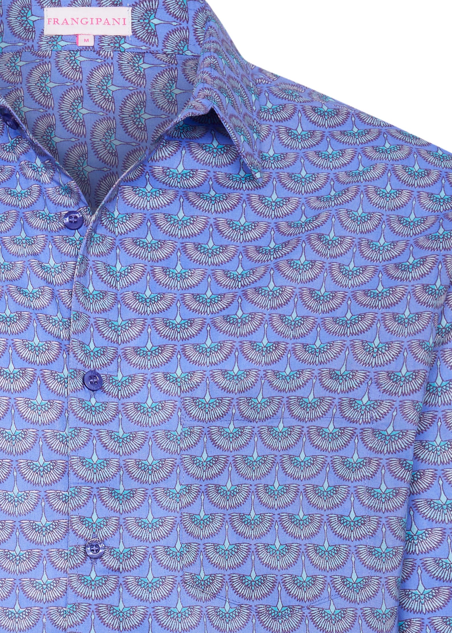 Featuring blue cranes soaring in harmony, the intricate screen print stands out beautifully against a rich indigo base, giving this shirt a colourway you'll love.