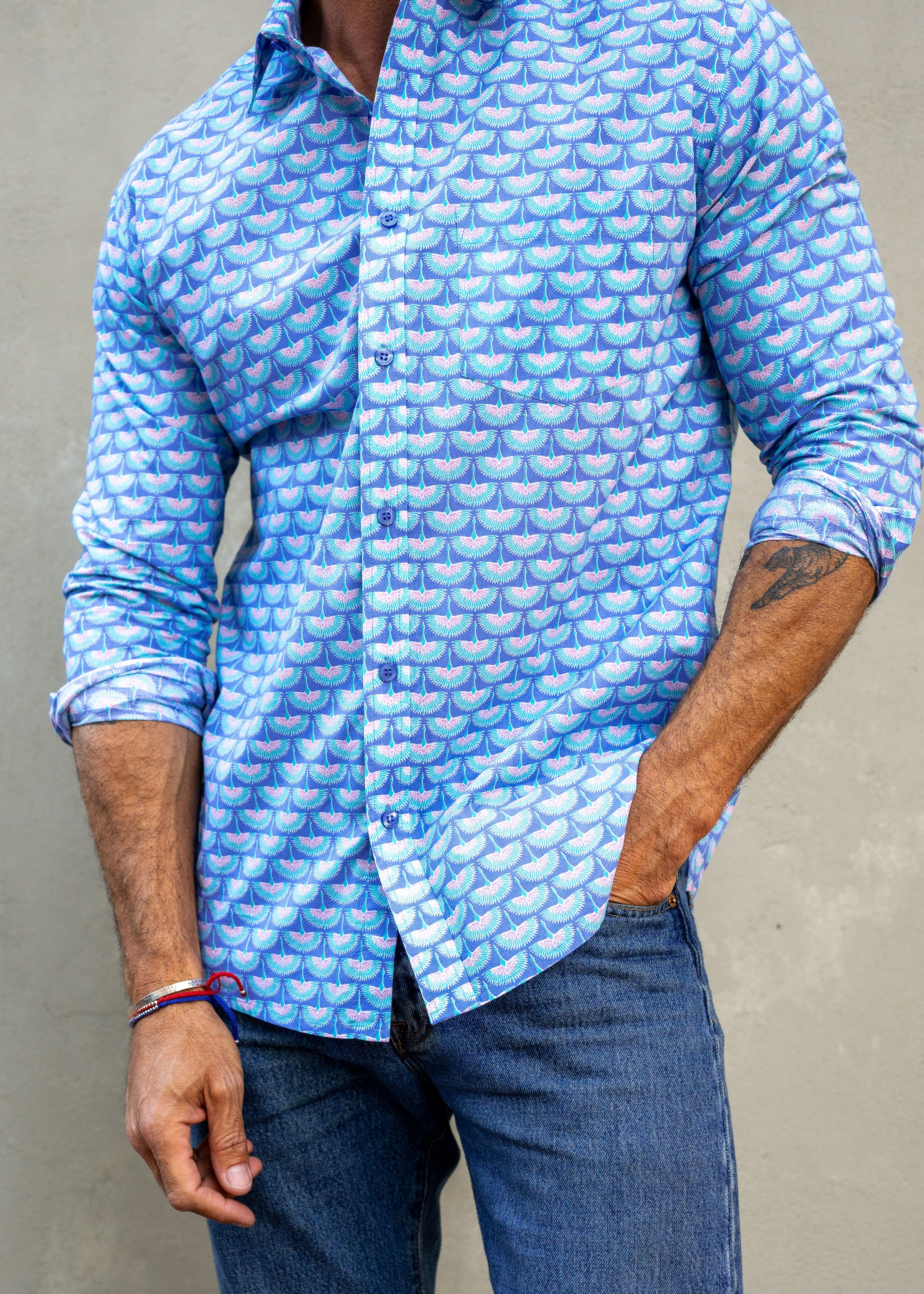 Diamond Dot' Organic Cotton Shirt in Blue Lagoon