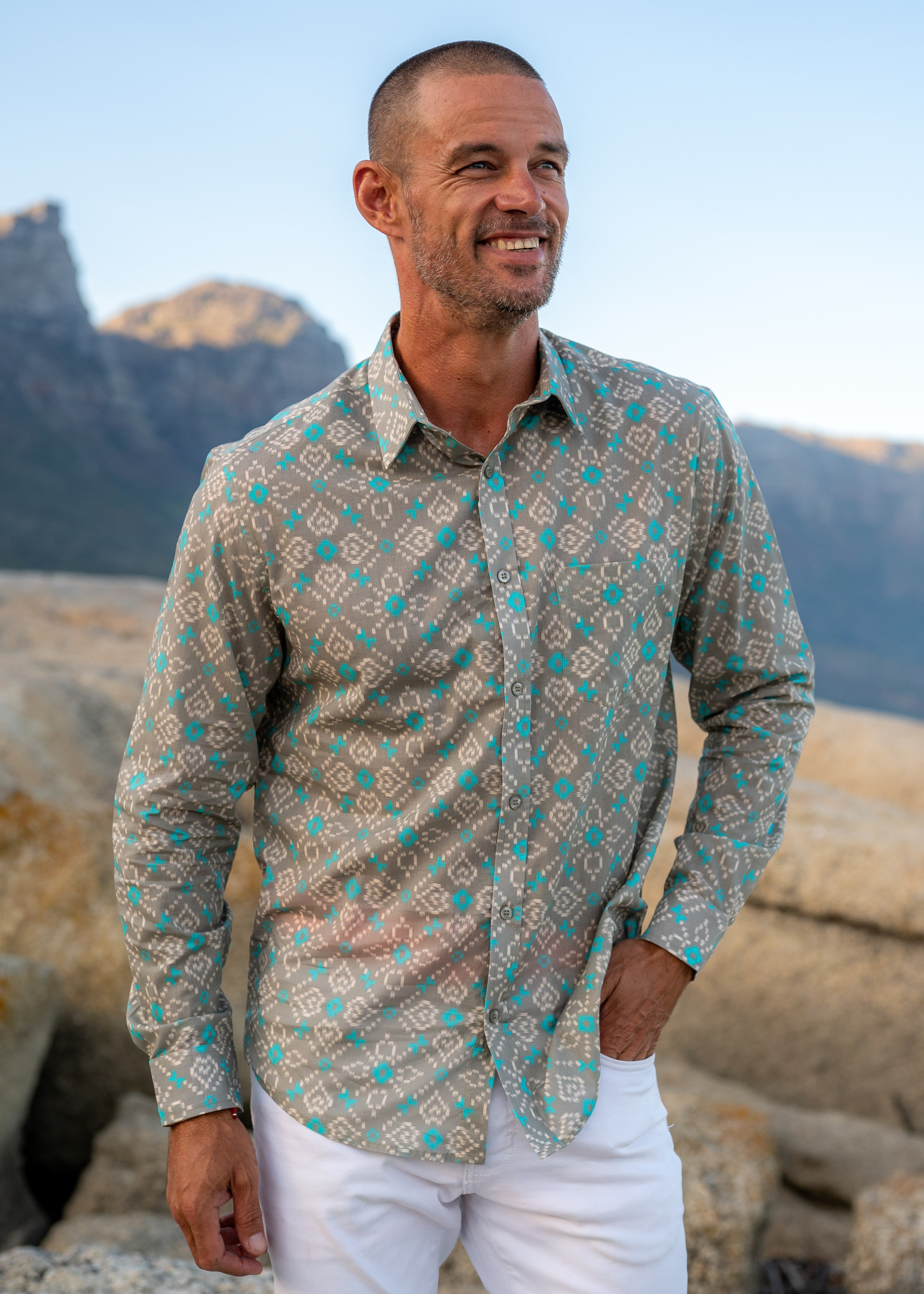 Sky Scape Mens' Cotton Organic Shirt in Blue