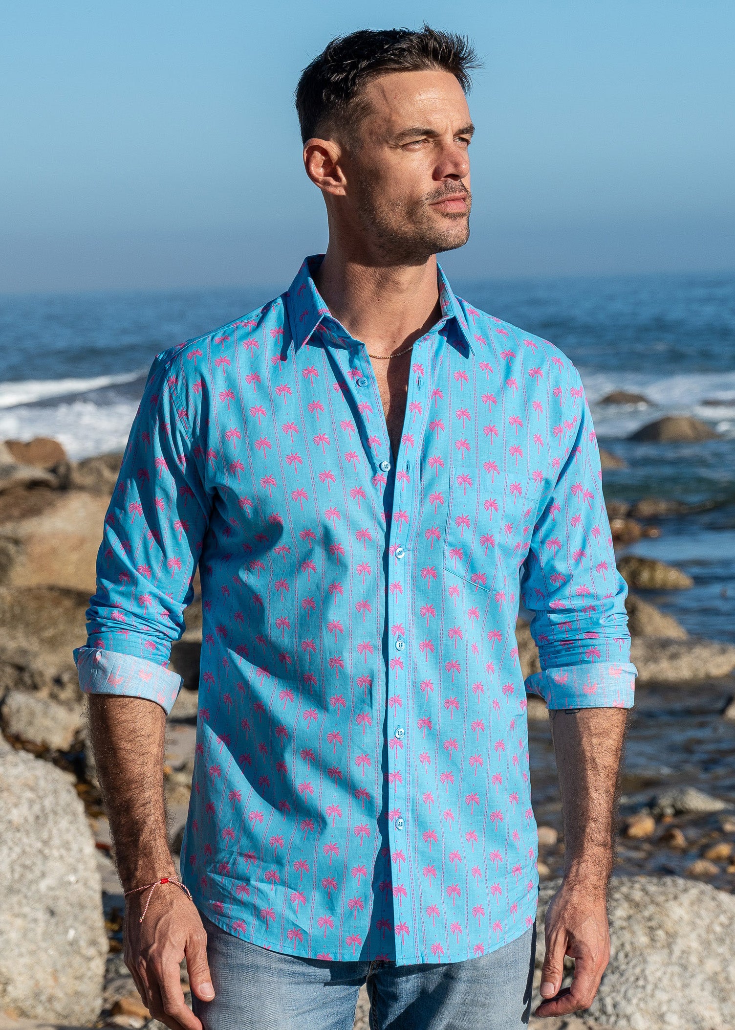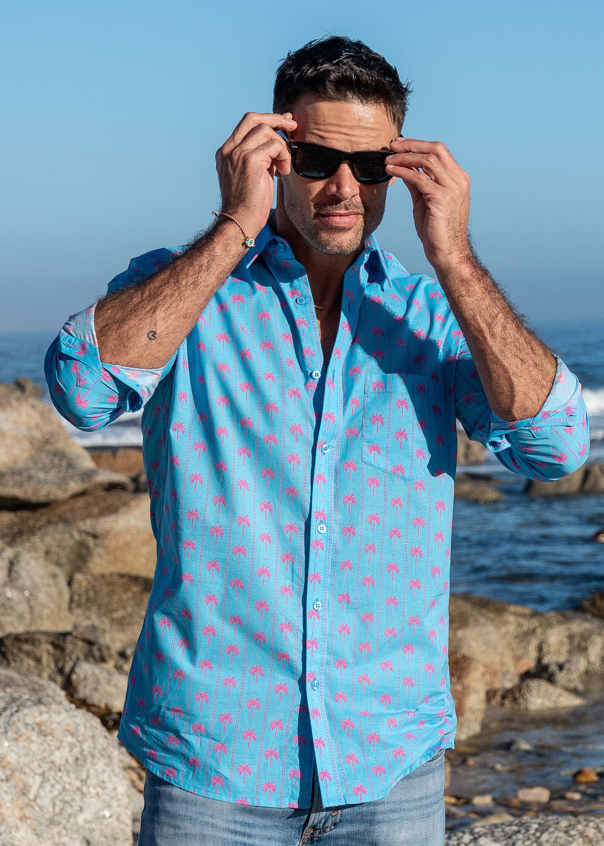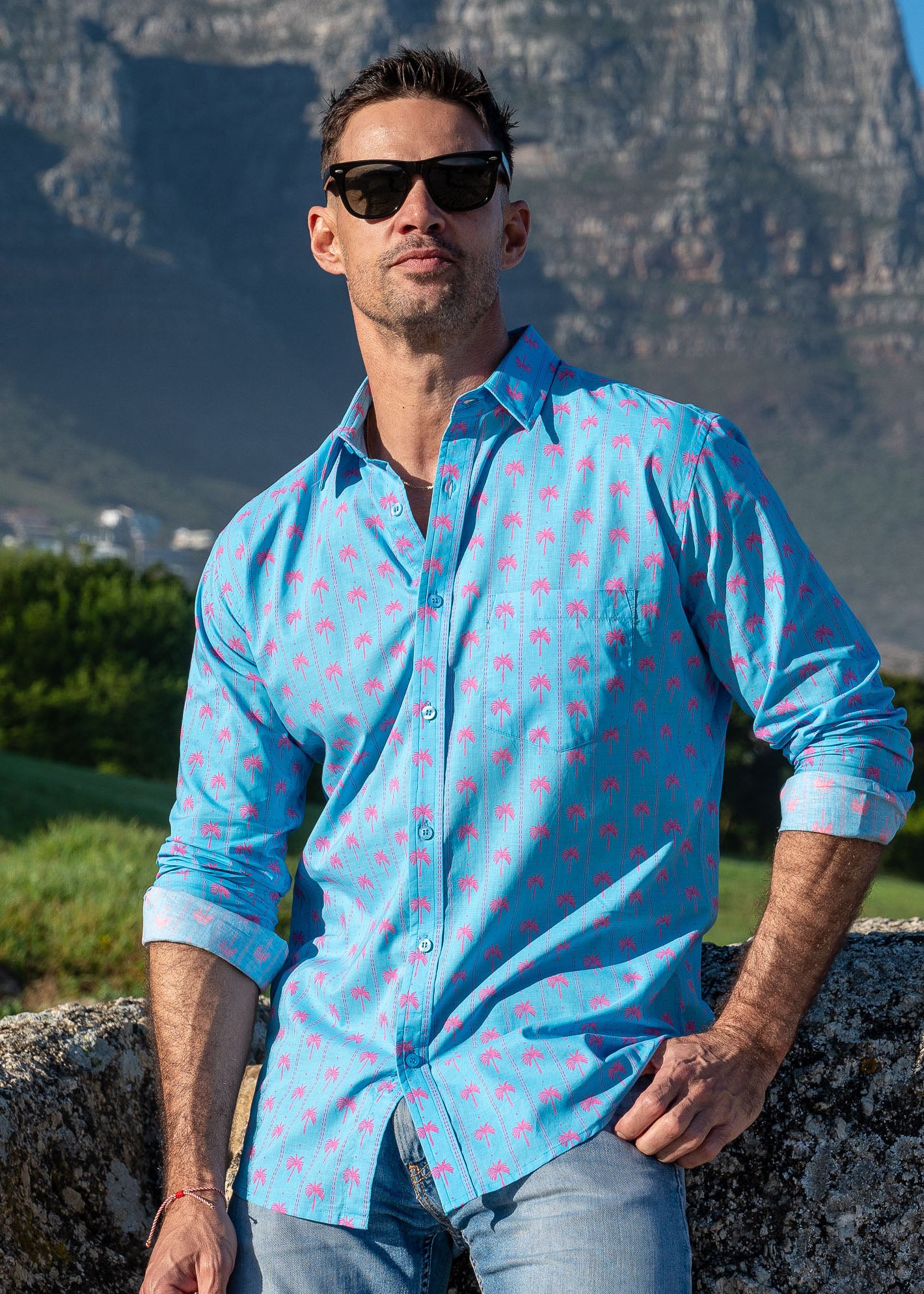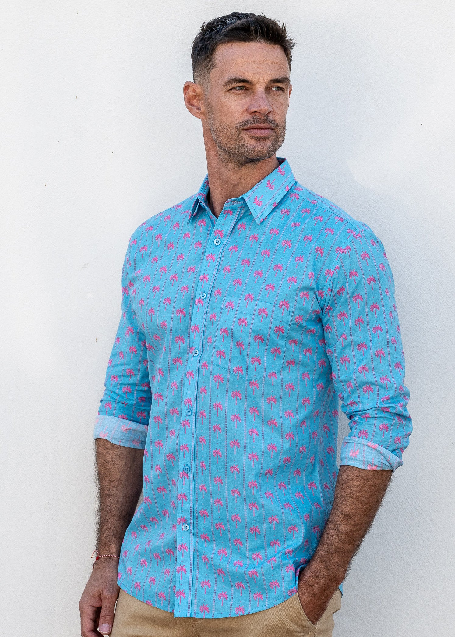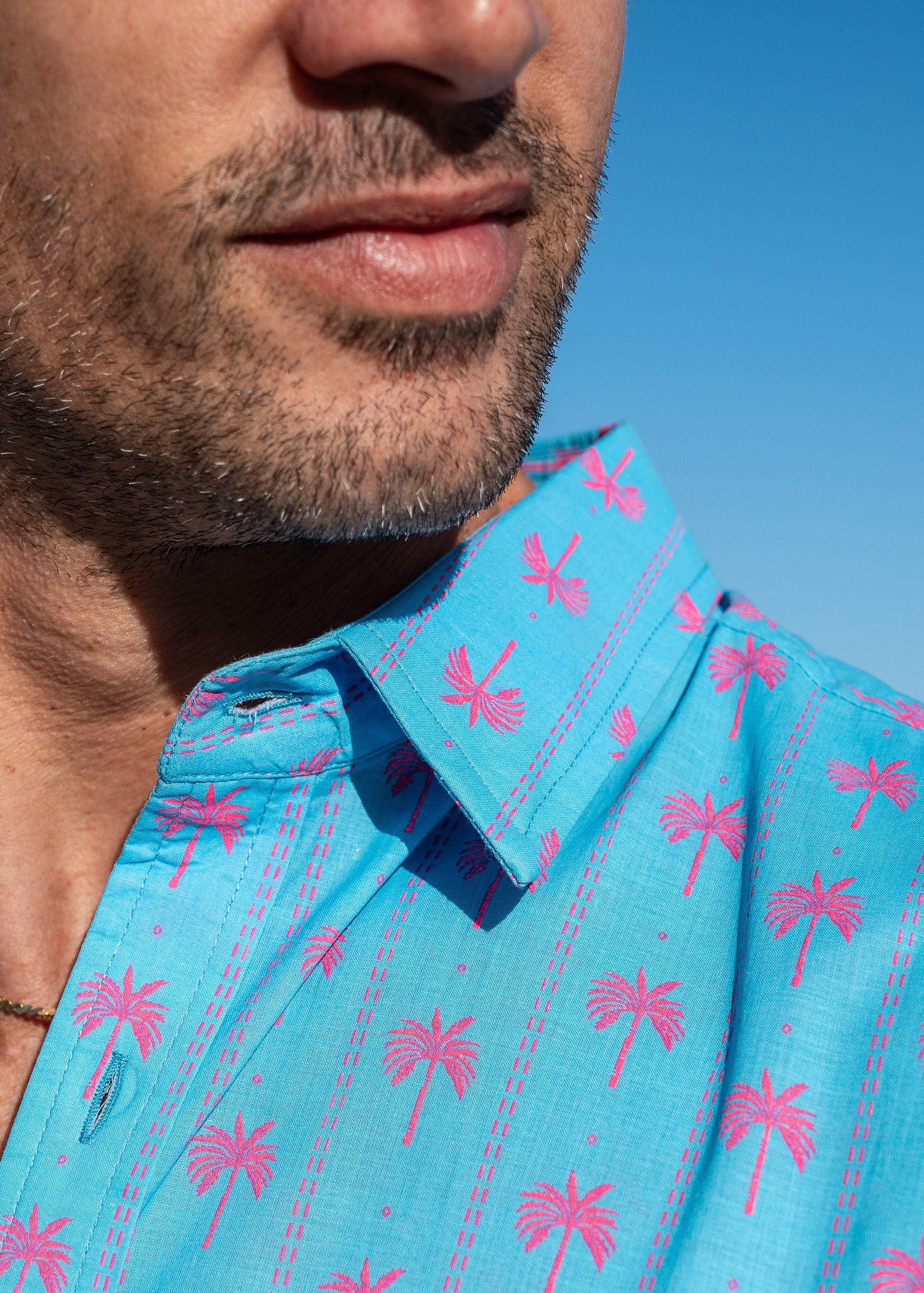 Frangipalmi Mens' Cotton Shirt in Turquoise
