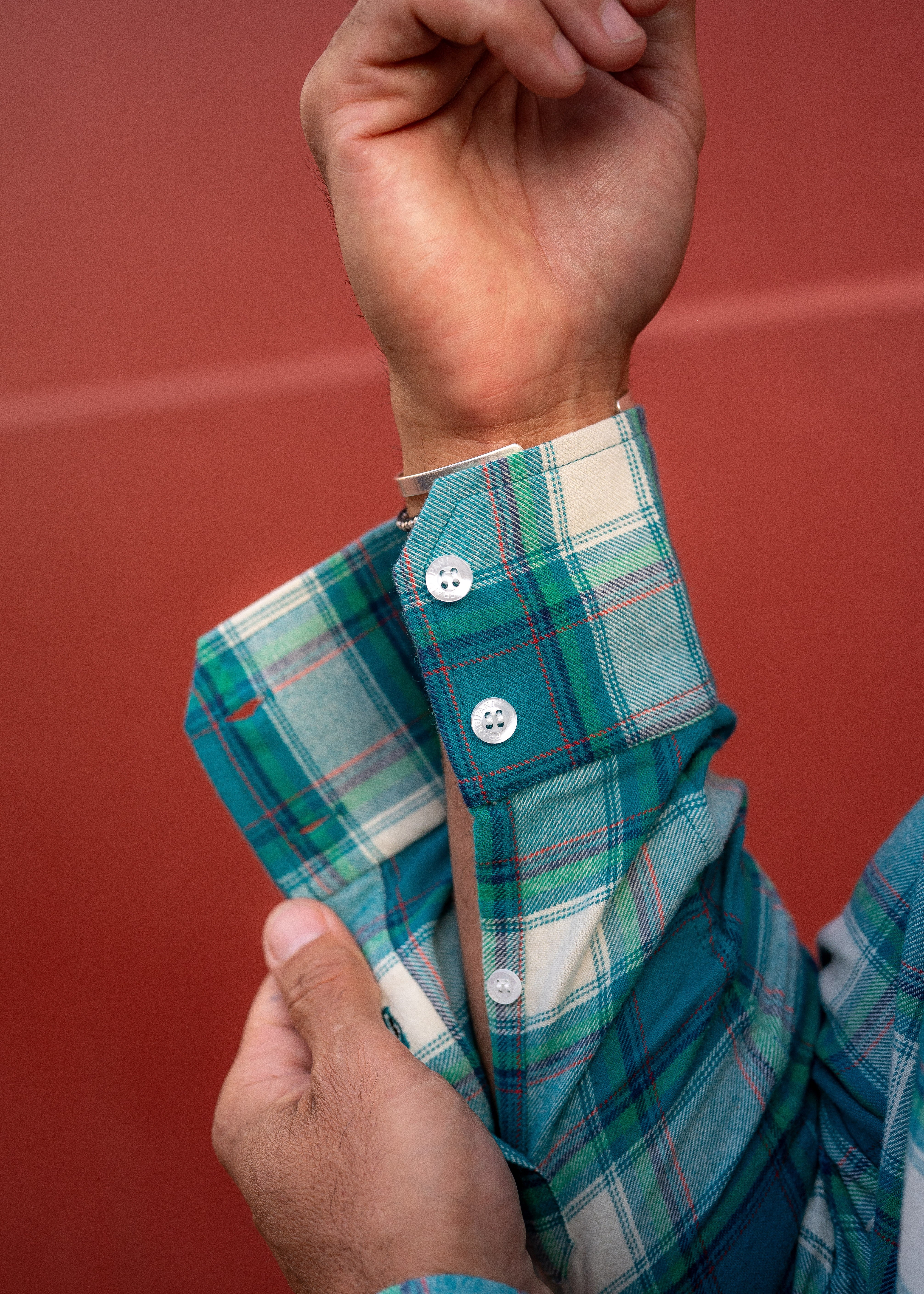 Made from mid-weight brushed cotton flannel, it’s soft, warm, and perfect for autumn. The kind of shirt that keeps you cosy while still looking effortlessly sharp — whether layered over a tee or worn on its own.