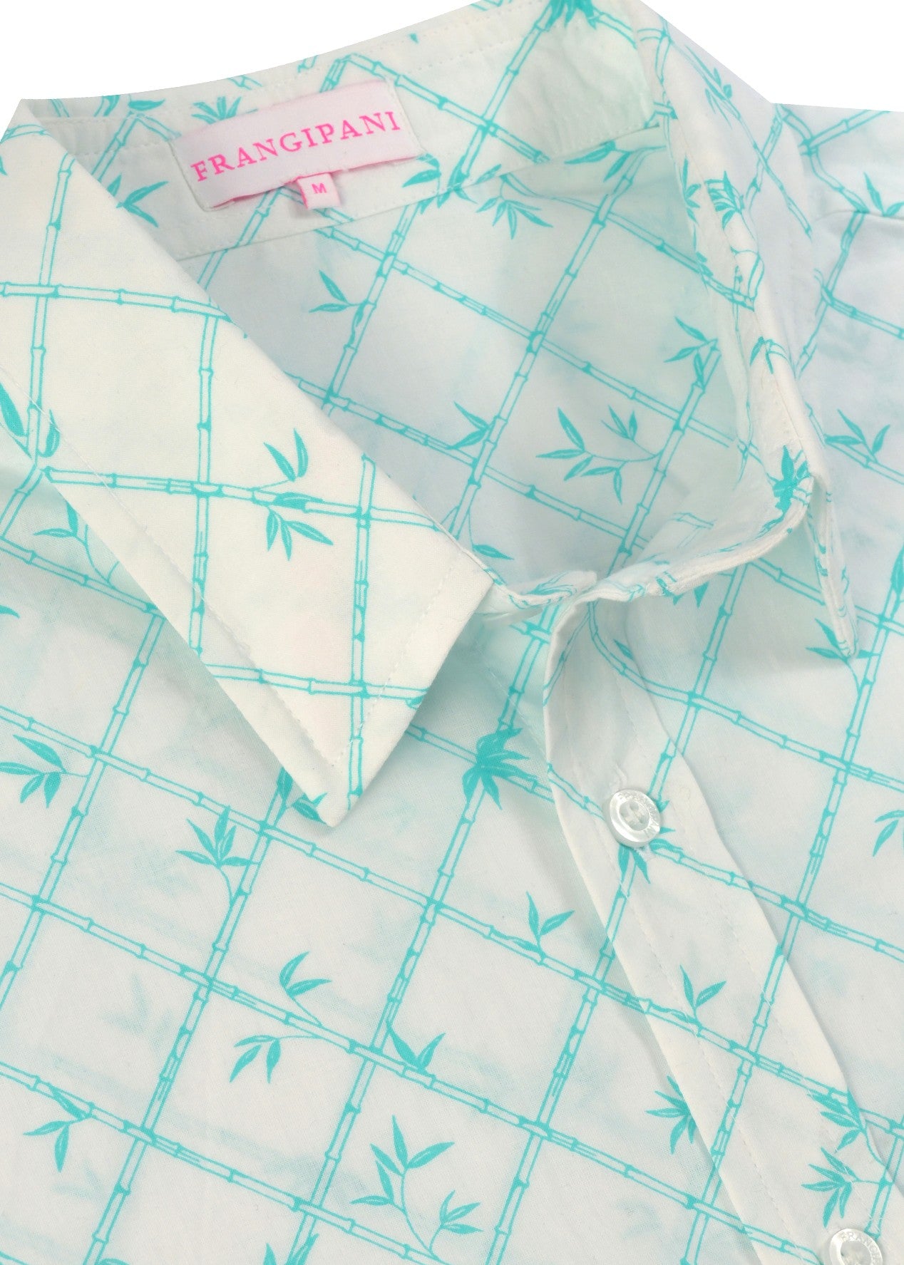 Fresh, light, and full of positive energy — Lucky Bamboo brings a sense of calm to your summer wardrobe. The mint-green bamboo lattice is screen printed onto a crisp white base, giving the shirt a clean, breezy feel that’s perfect for sunnier days and laid-back evenings.