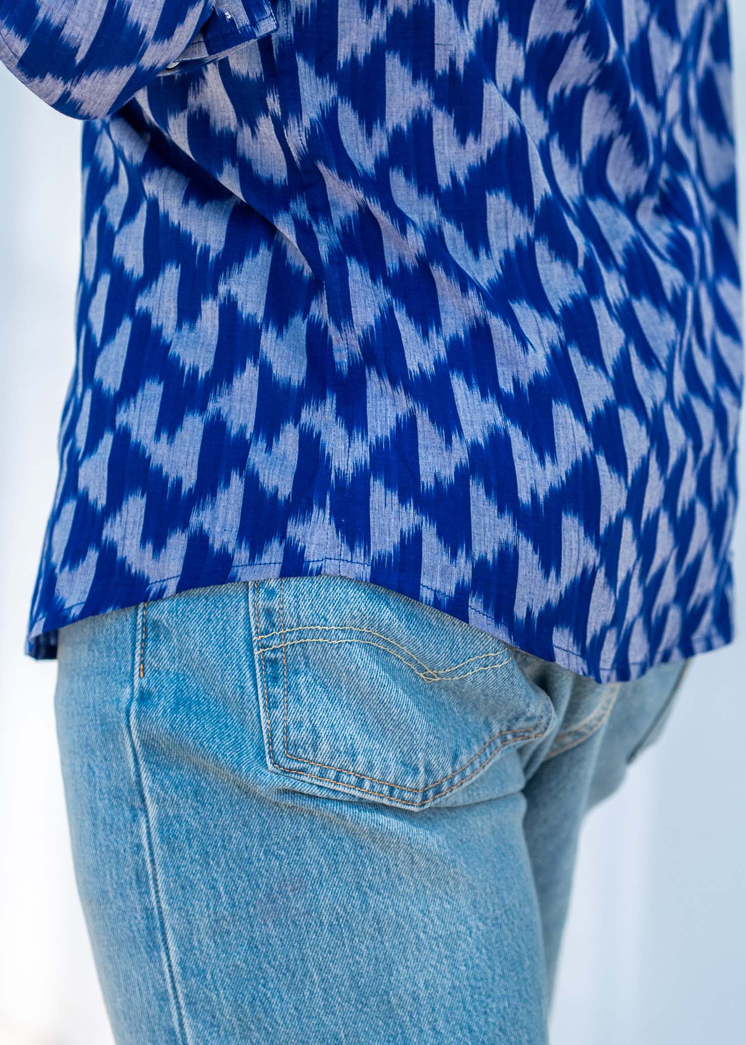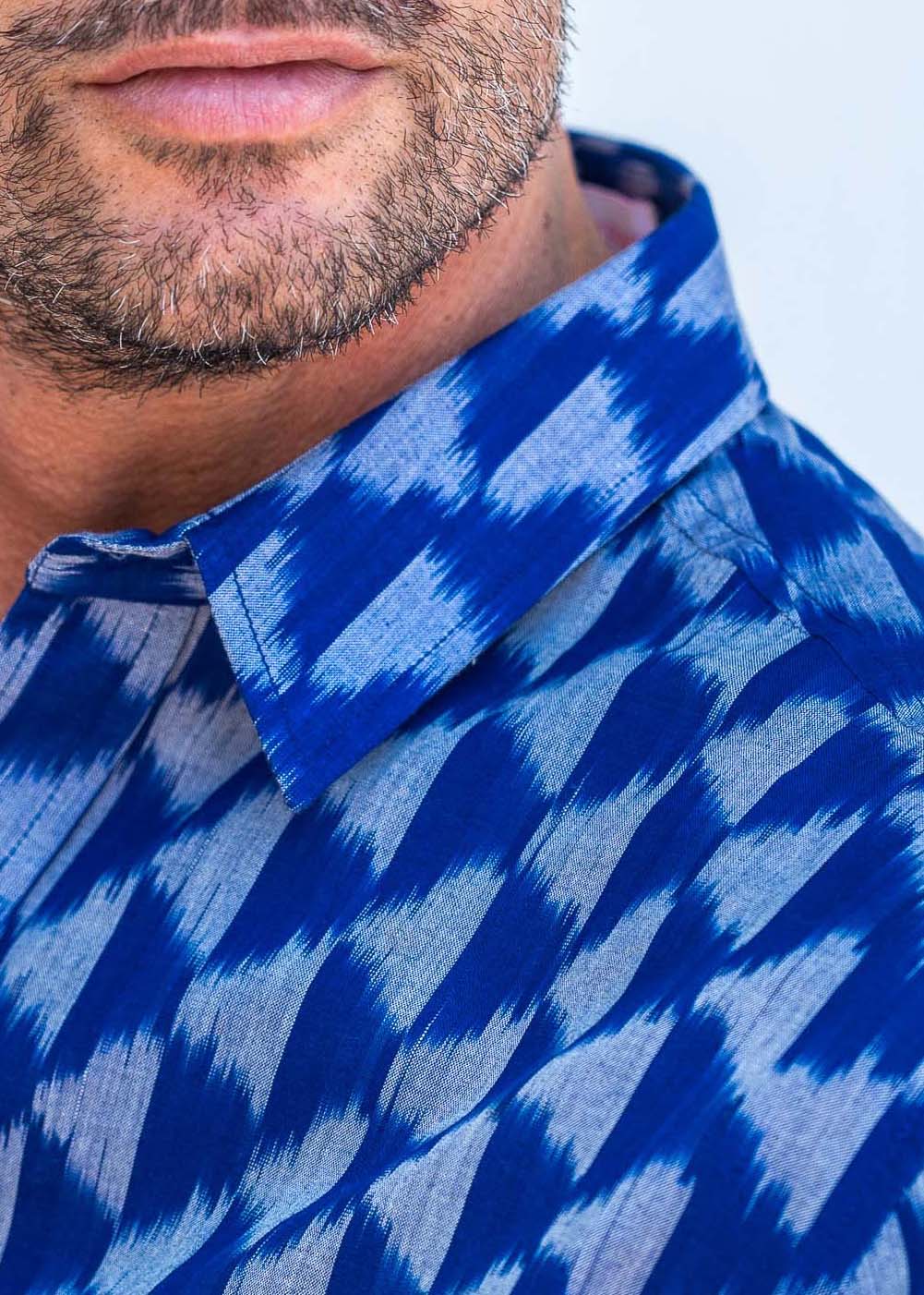 Ikat is a completely hand-made fabric. Skilled craftsmen tie and dye the design into the yarn before the fabric is woven on a wooden loom. During weaving, the yarns move slightly, giving motifs a distinctive feathery edge known as “the Ikat look.