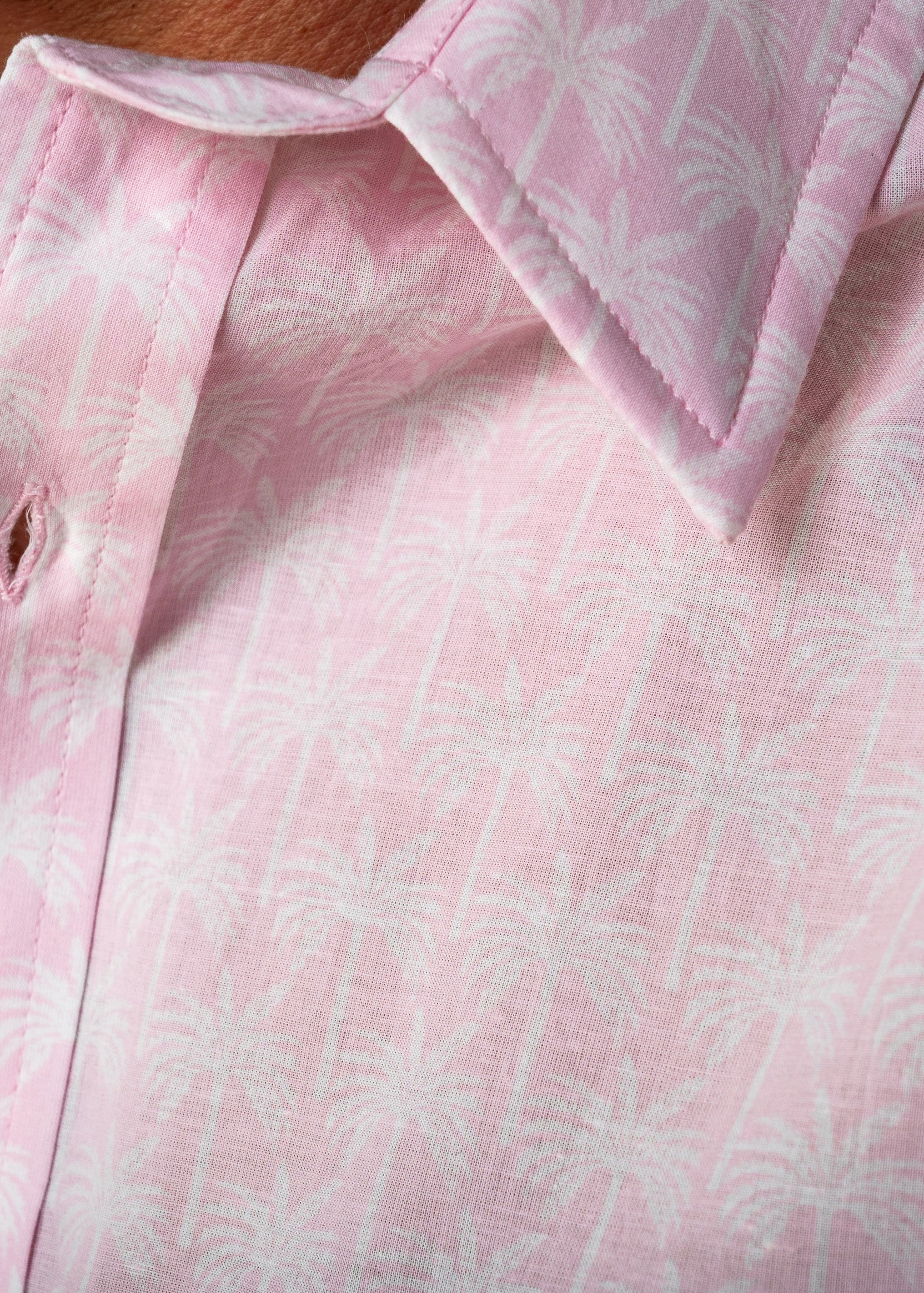 Subtle yet distinctive, Palm Grove Pink features a soft blush pink base accented with a refined palm tree print.