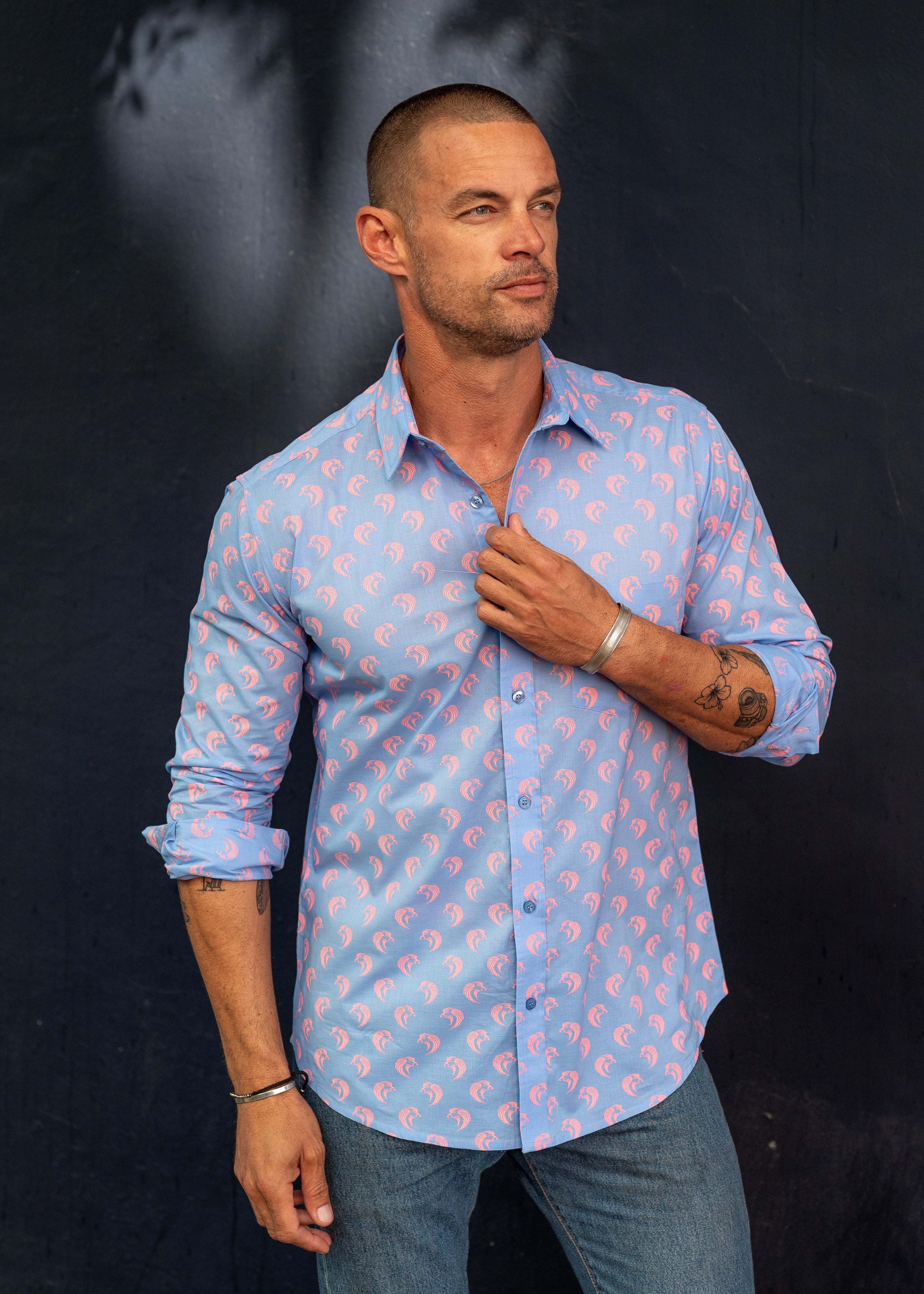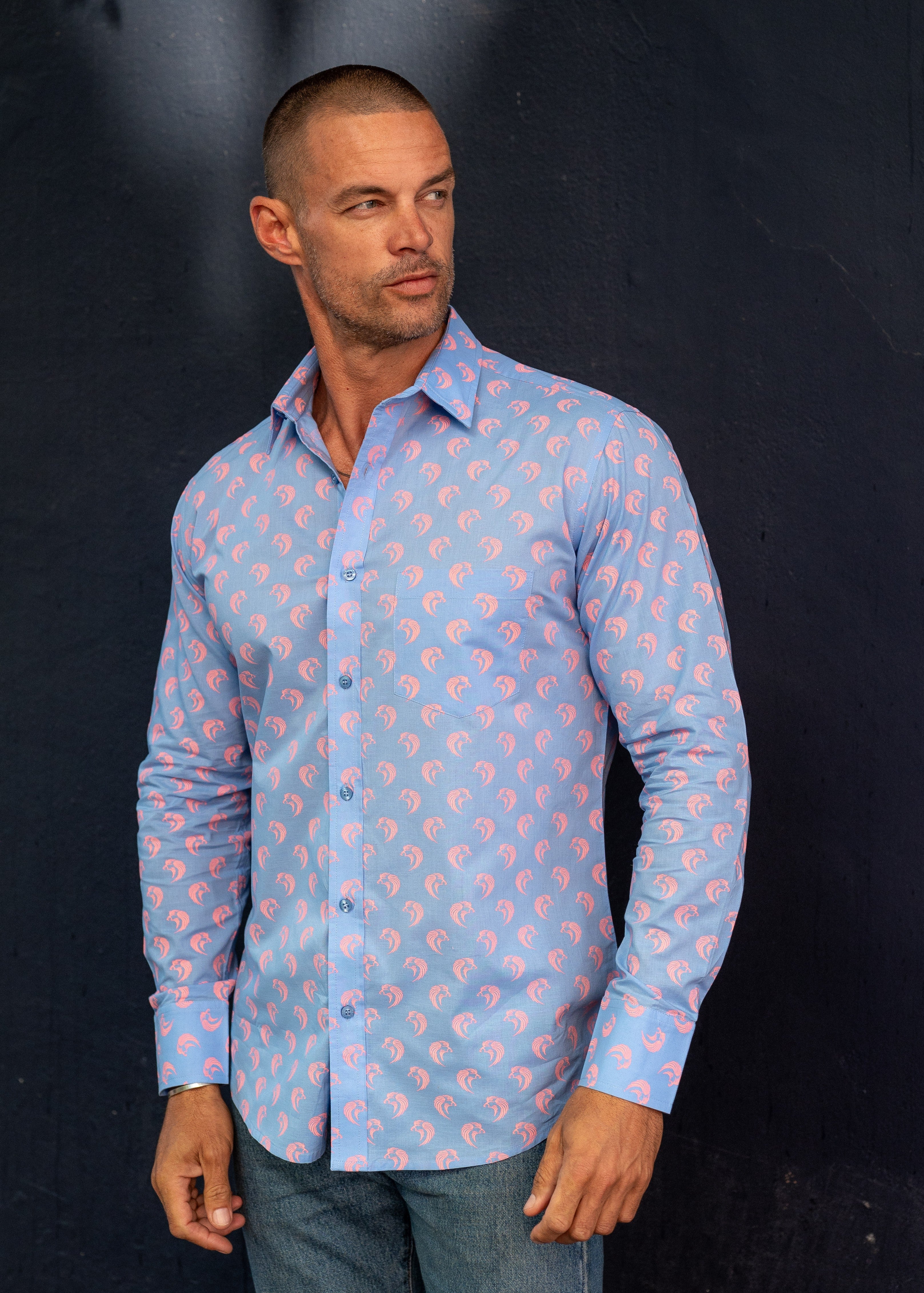 Siamese Sunrise Men's Organic Cotton Shirt in Blue