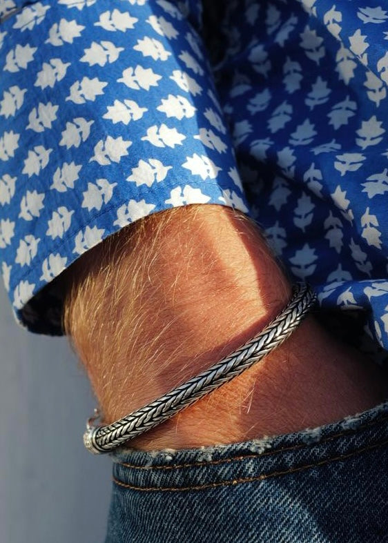 A heavy-weight, solid silver, handmade Indian snake woven bracelet.