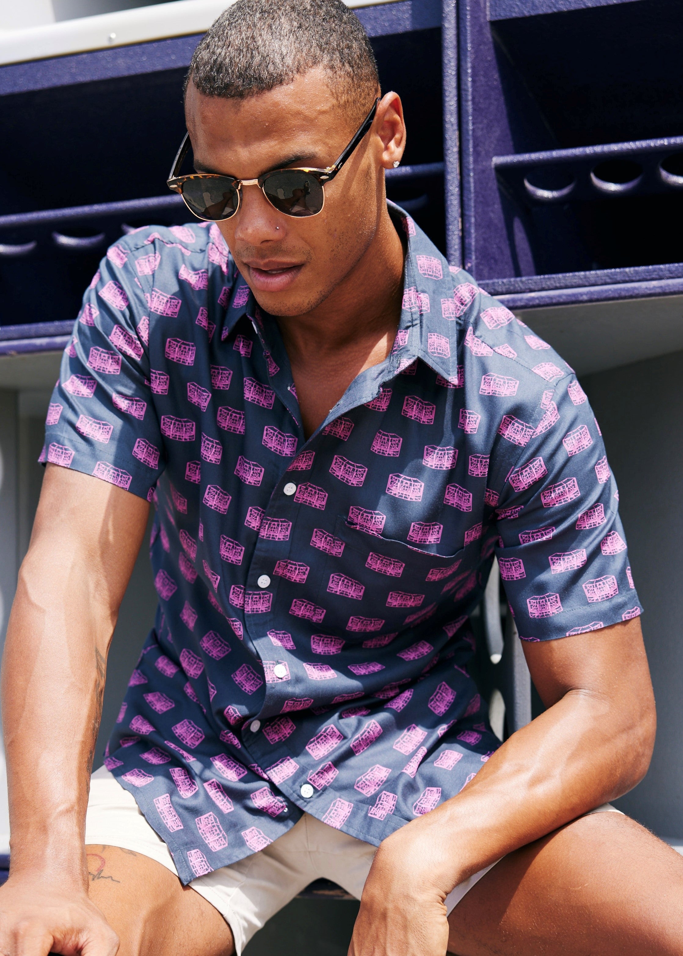 Model photo taken in Ibiza in sunlight. Refer to close up for true colour of the shirt!