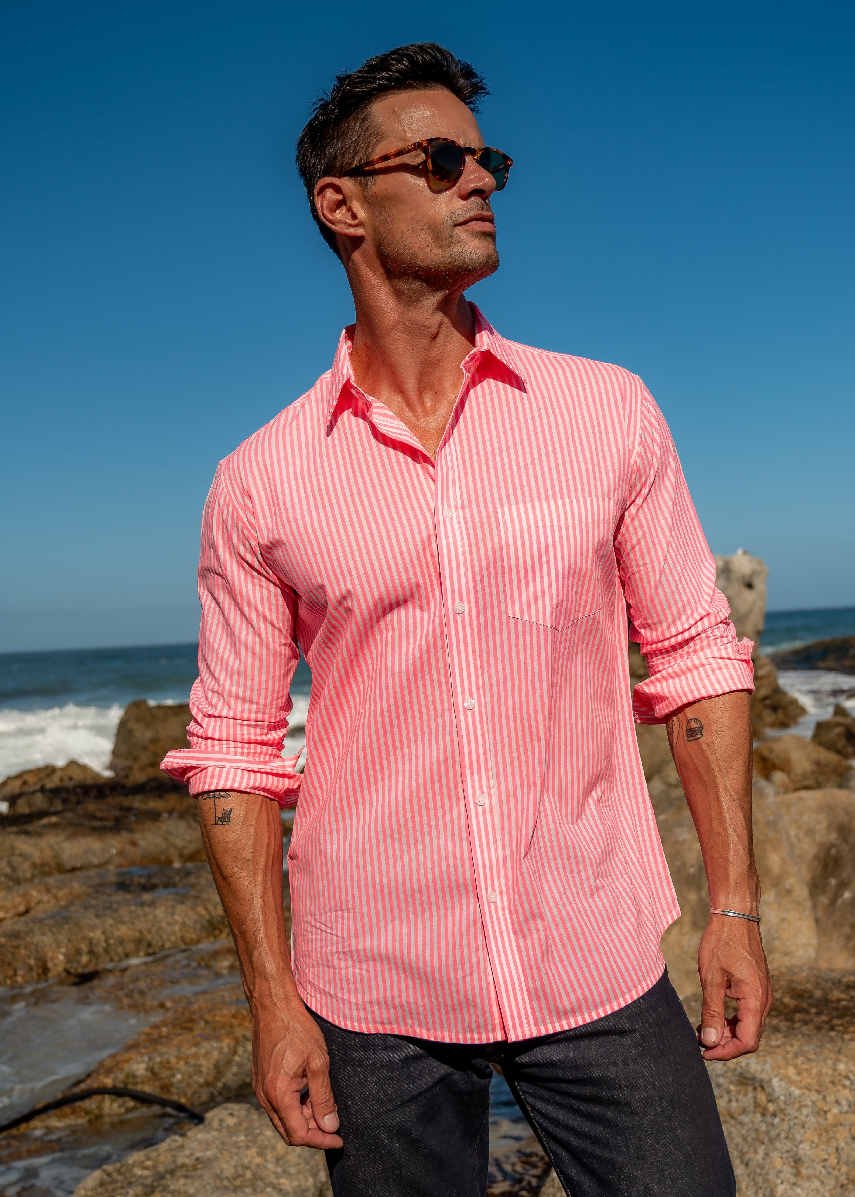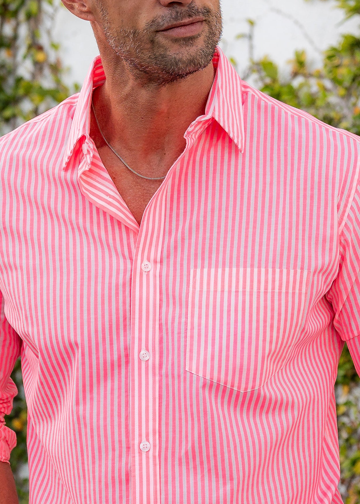 Turn up the vibrance with the Bright Lights Shirt, designed to bring spring alive. Featuring neon pink thin stripes on our signature lightweight organic cotton, this shirt is all about effortless energy and standout style.