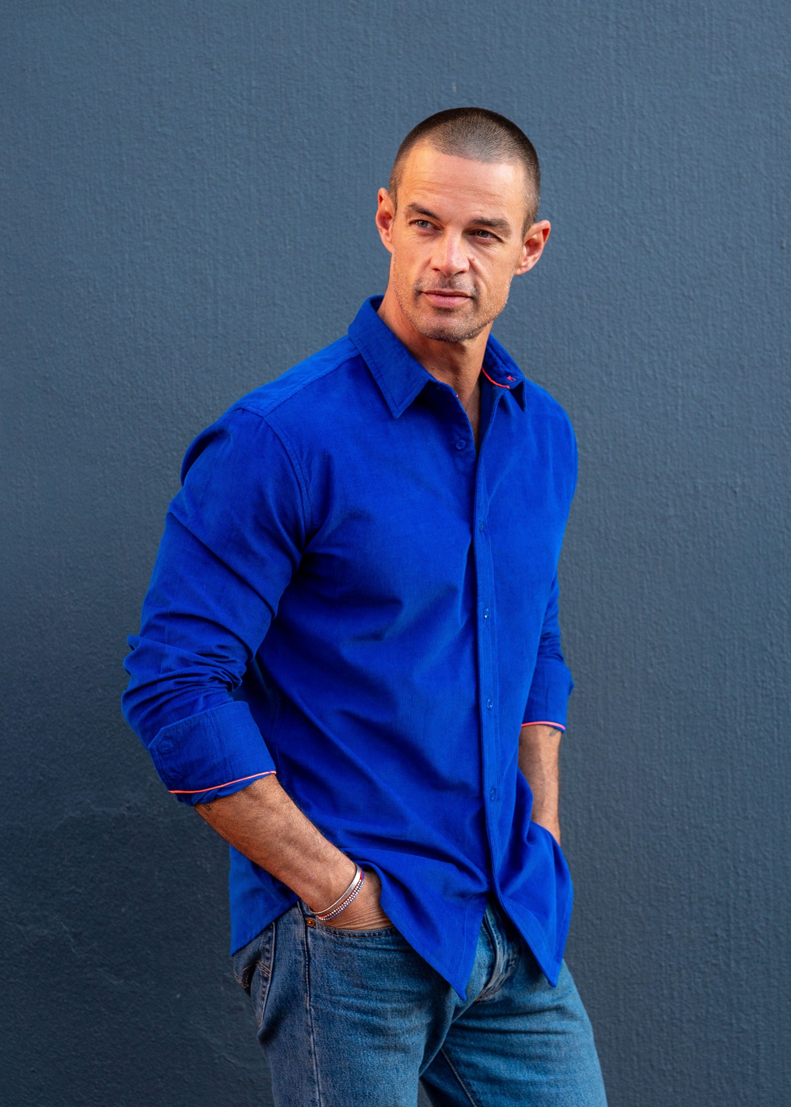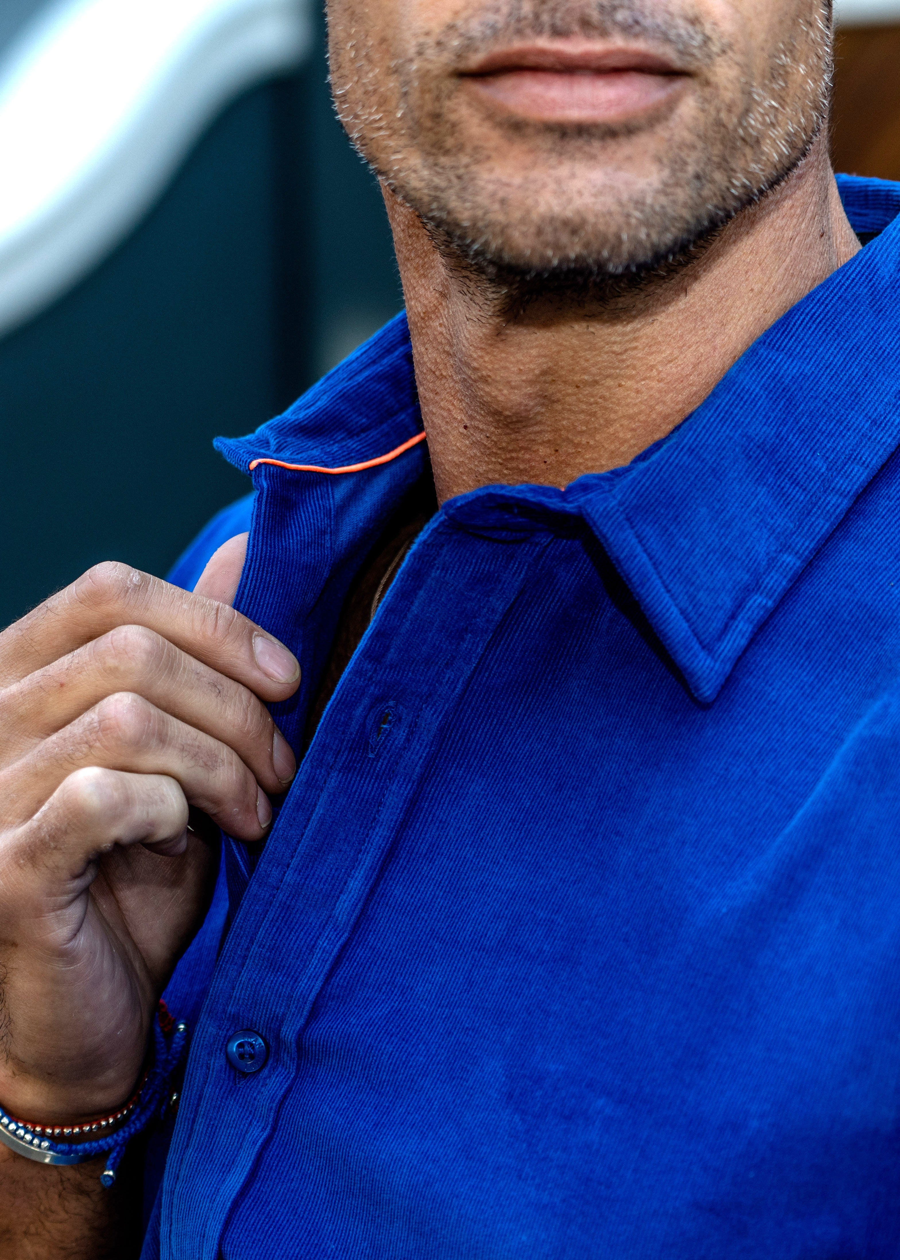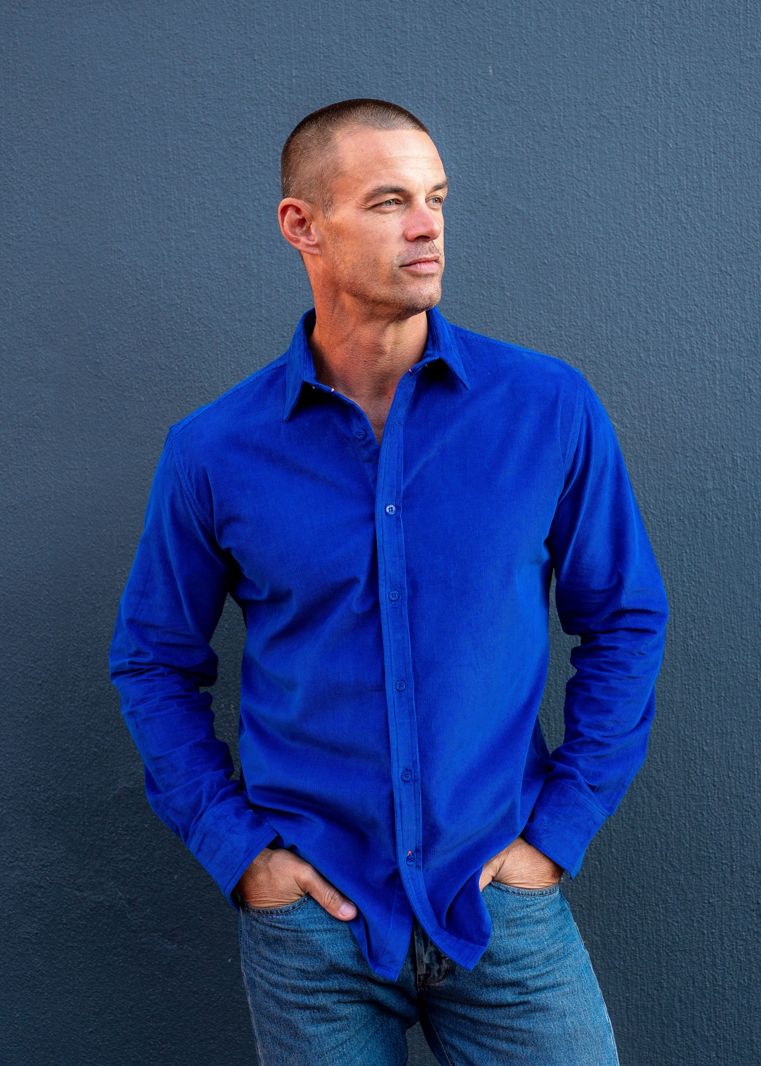 Corduroy Mens' Organic Cotton Shirt in Electric Blue