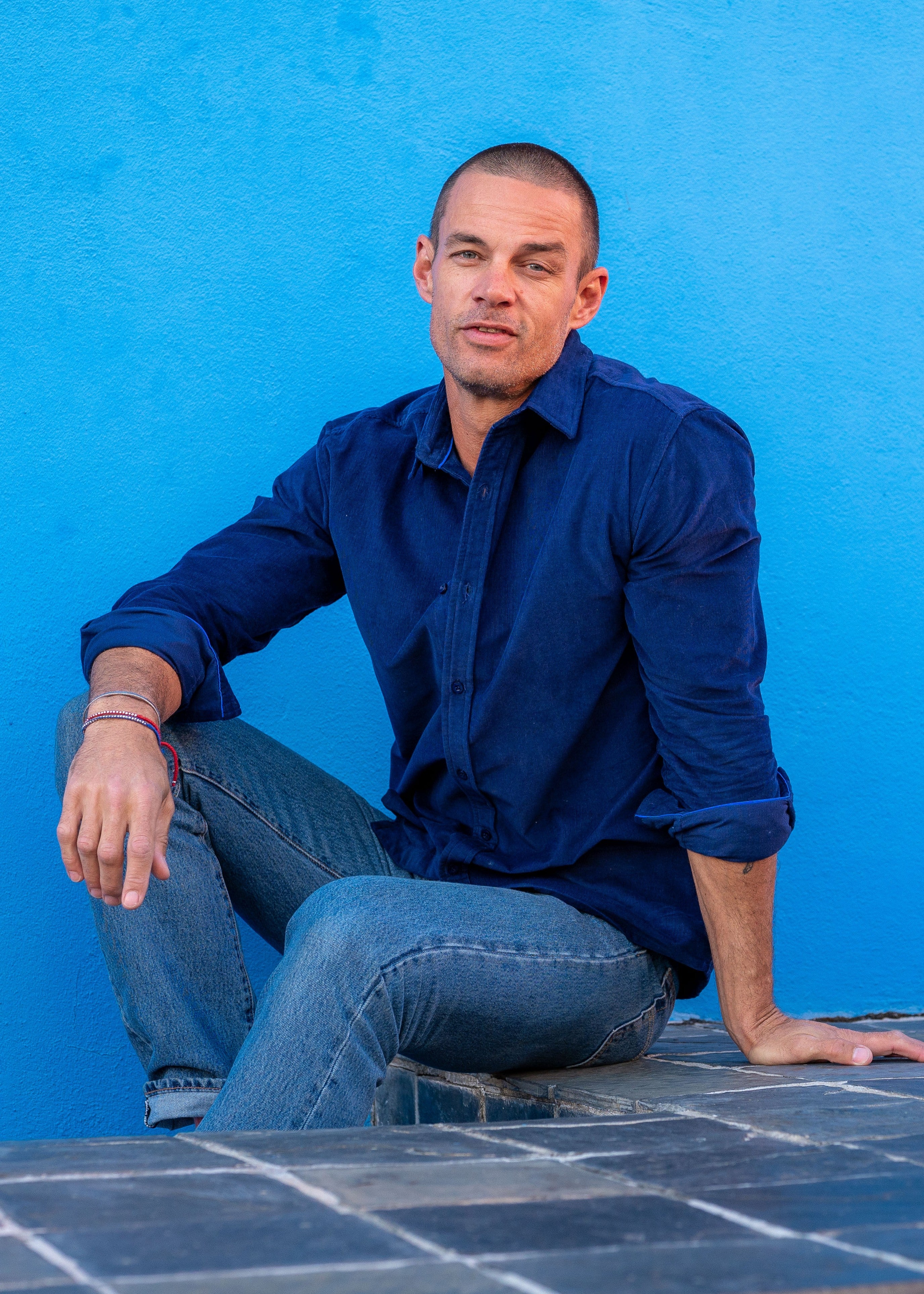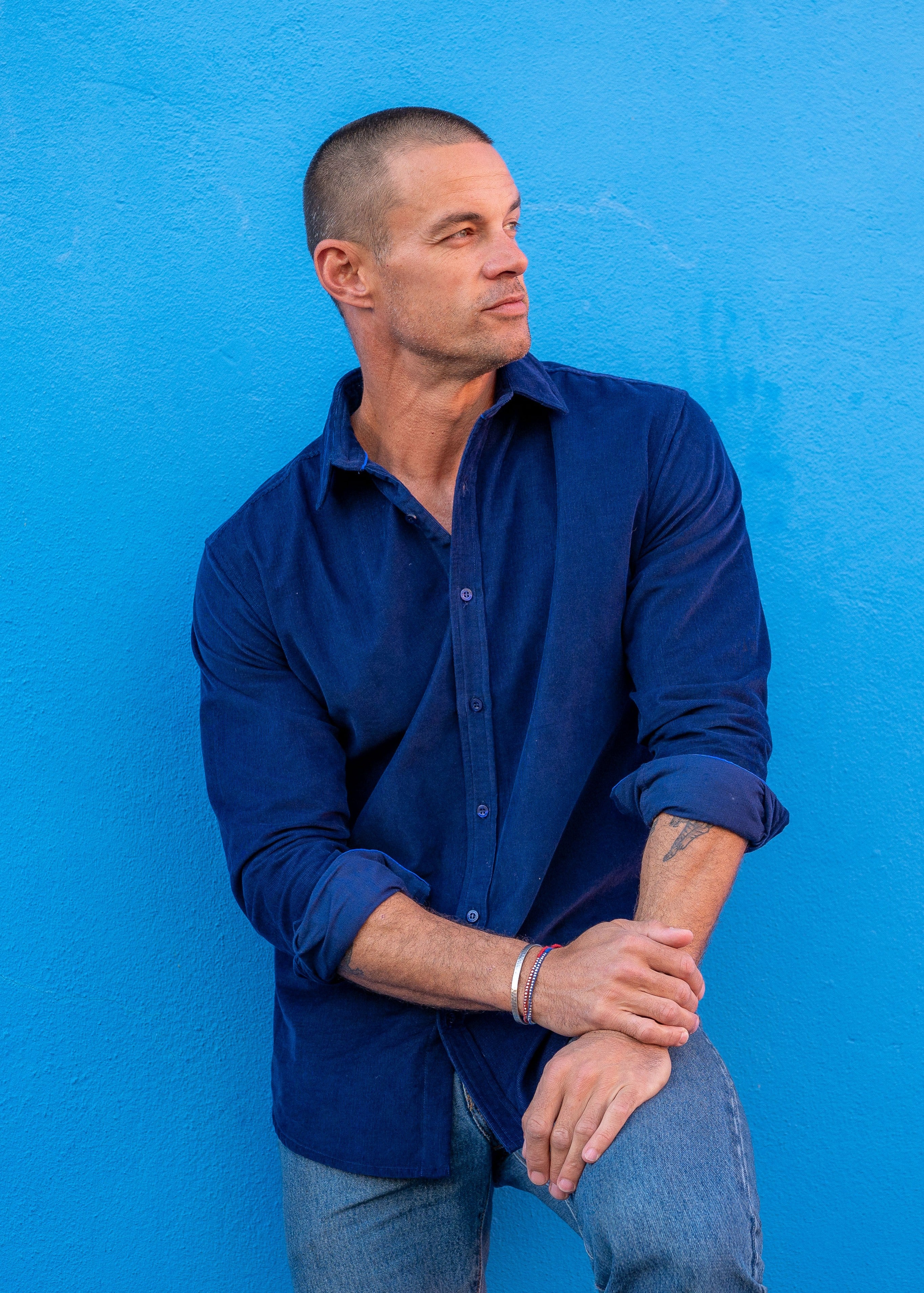 Finished with cobalt blue contrast trims in the neck and cuffs, it carries that unmistakable Frangipani twist—classic with just the right amount of edge.