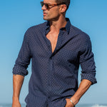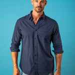Dish Dash Dot Mens' Cotton Shirt in Navy
