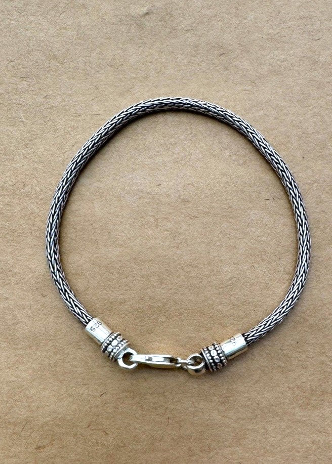 Round Antique Snake chain Bracelet in Sterling Silver 925