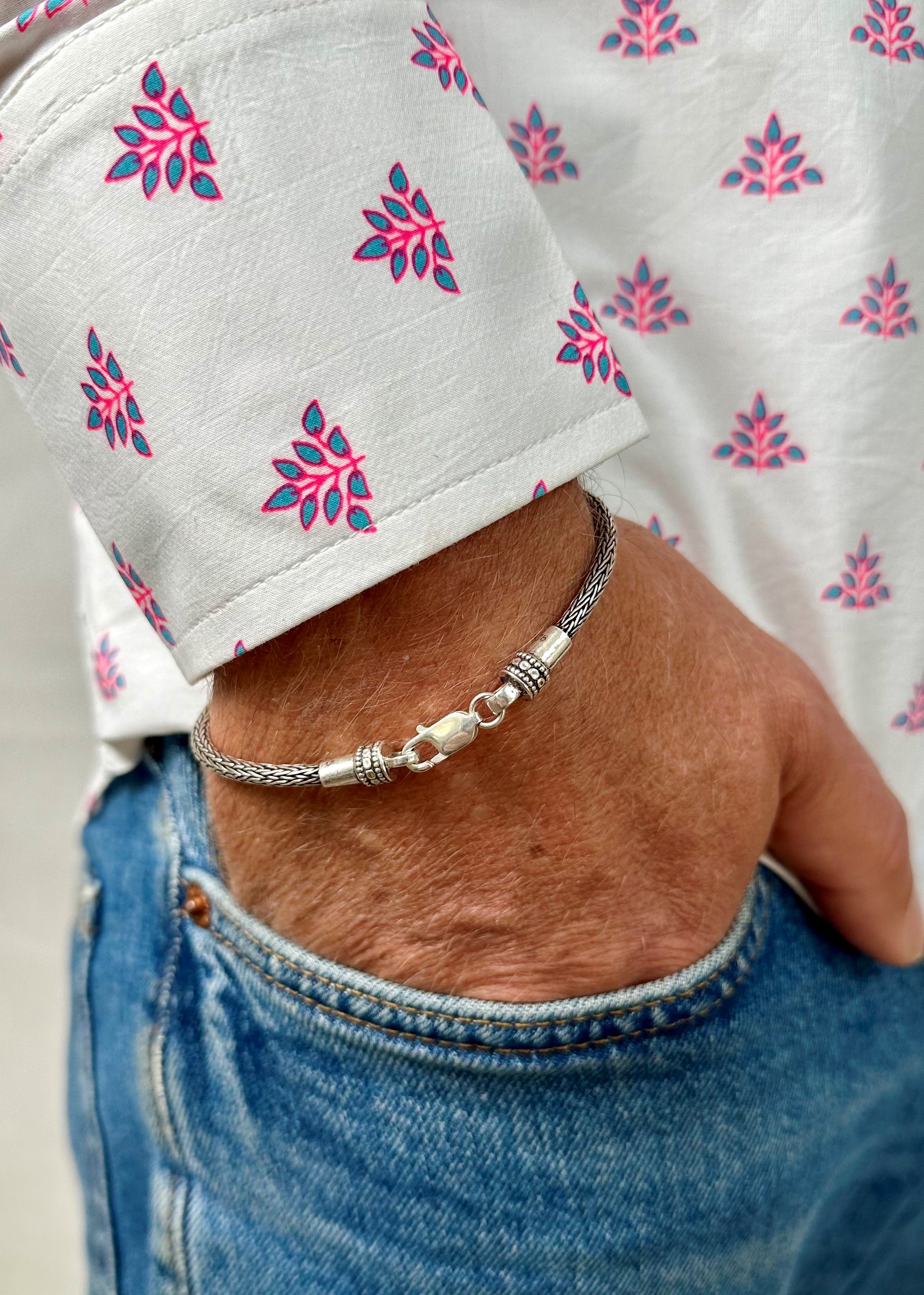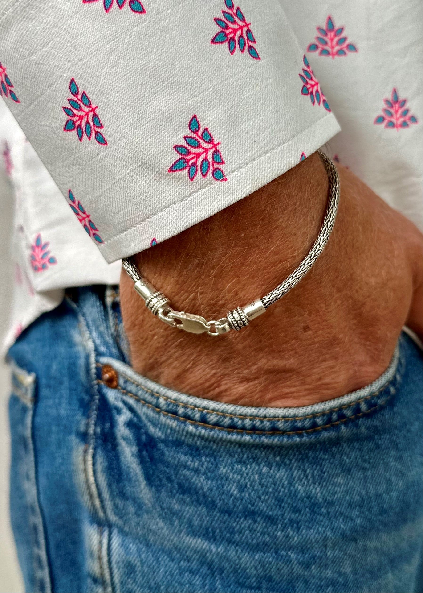 High quality handcrafted men's bracelet in sterling silver (925) with new fish lock closure