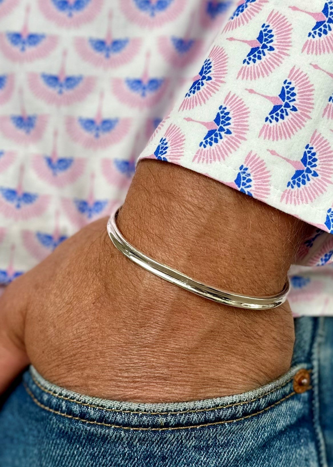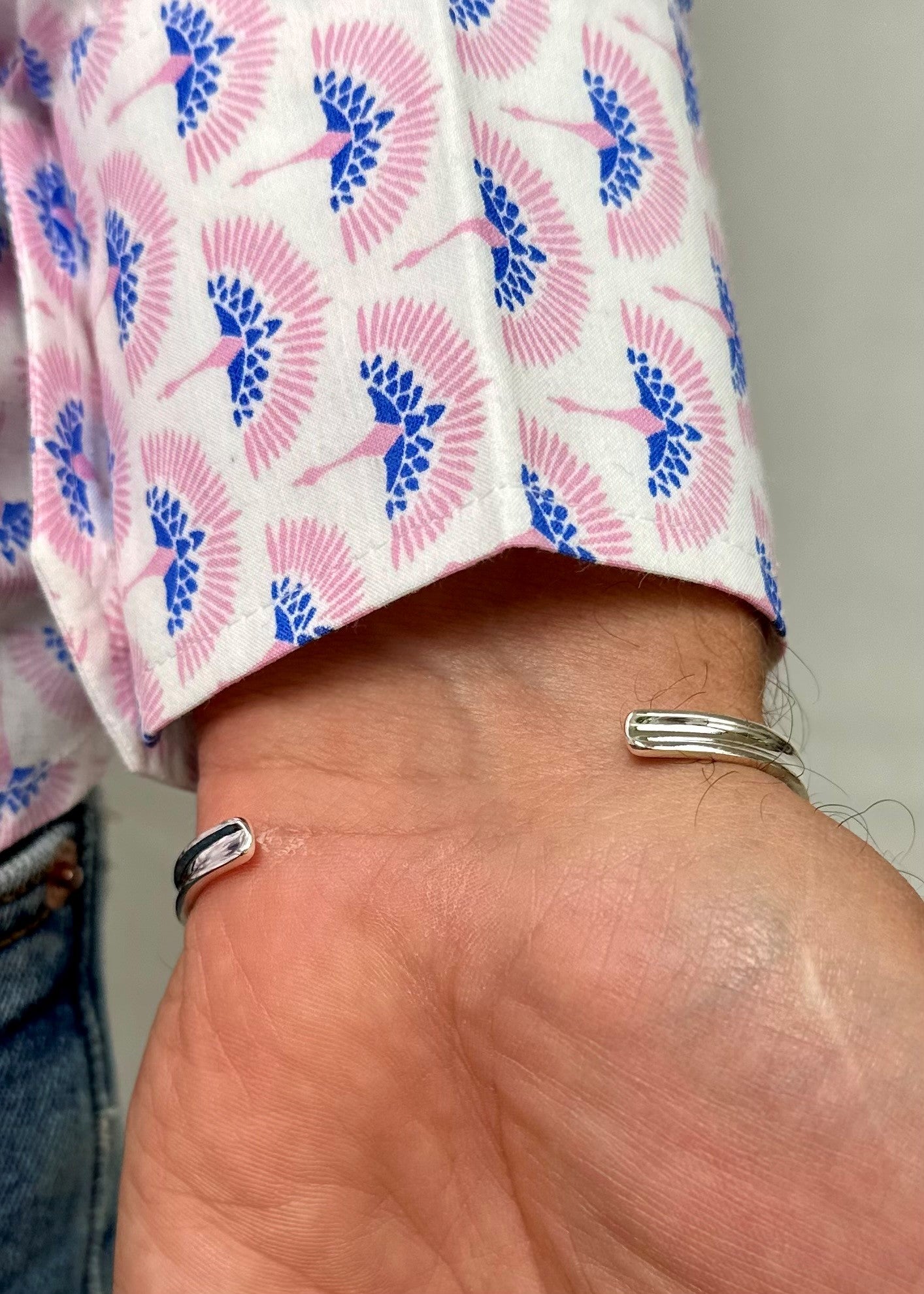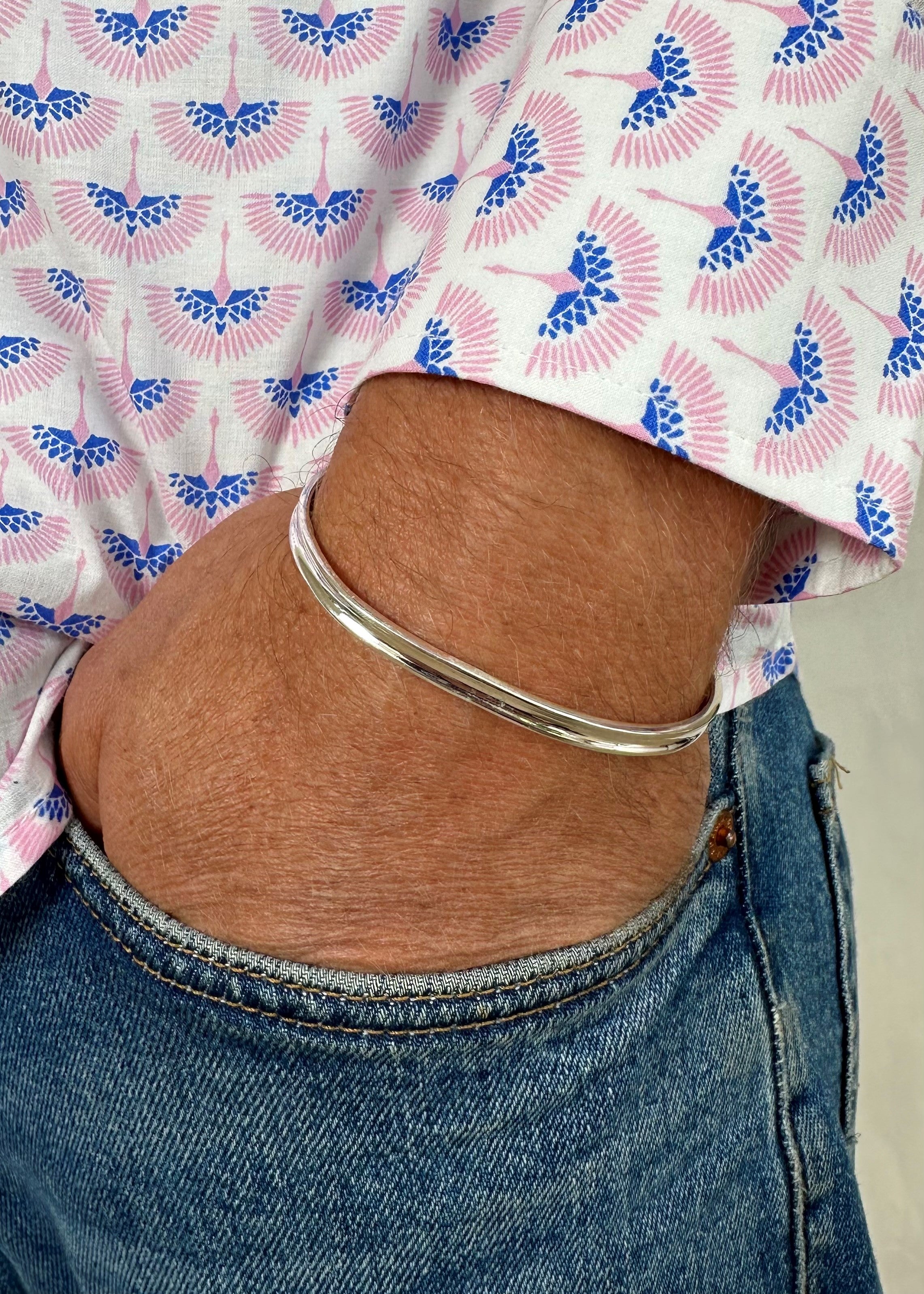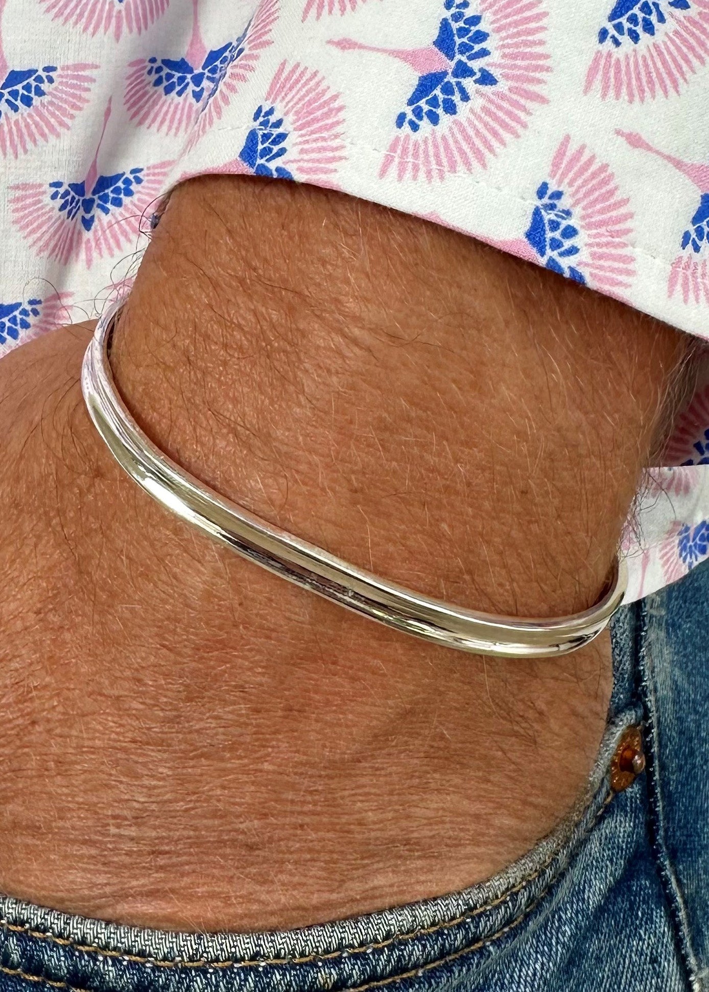 Adjustable open cuff measuring 16cm circumference, 0.4cm width