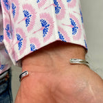 High quality handcrafted sleek silver men's open cuff with ridge pattern detail