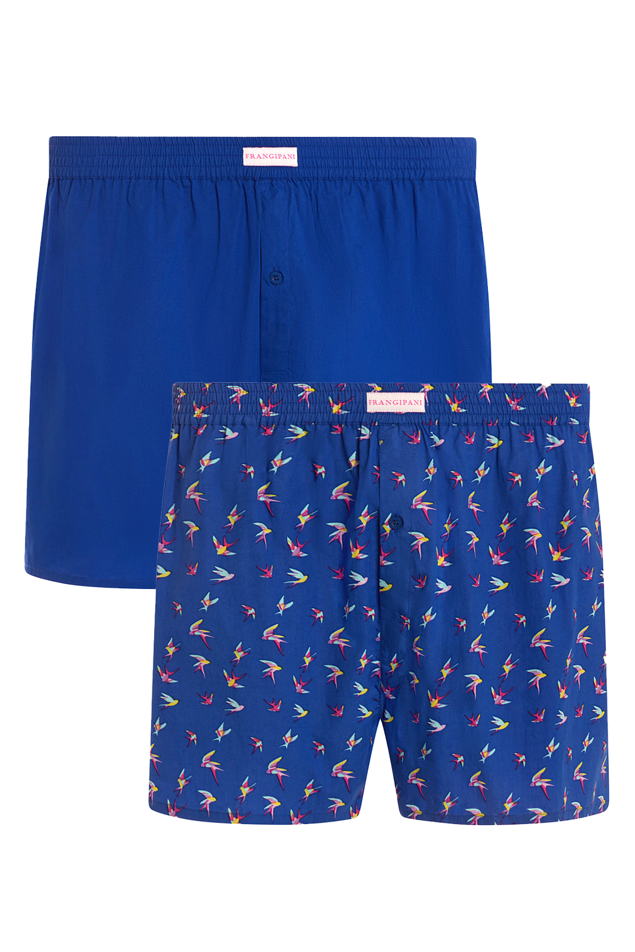 This twin pack boxer combo features our Birds of Play print boxer shorts and Royal Blue plain shorts.